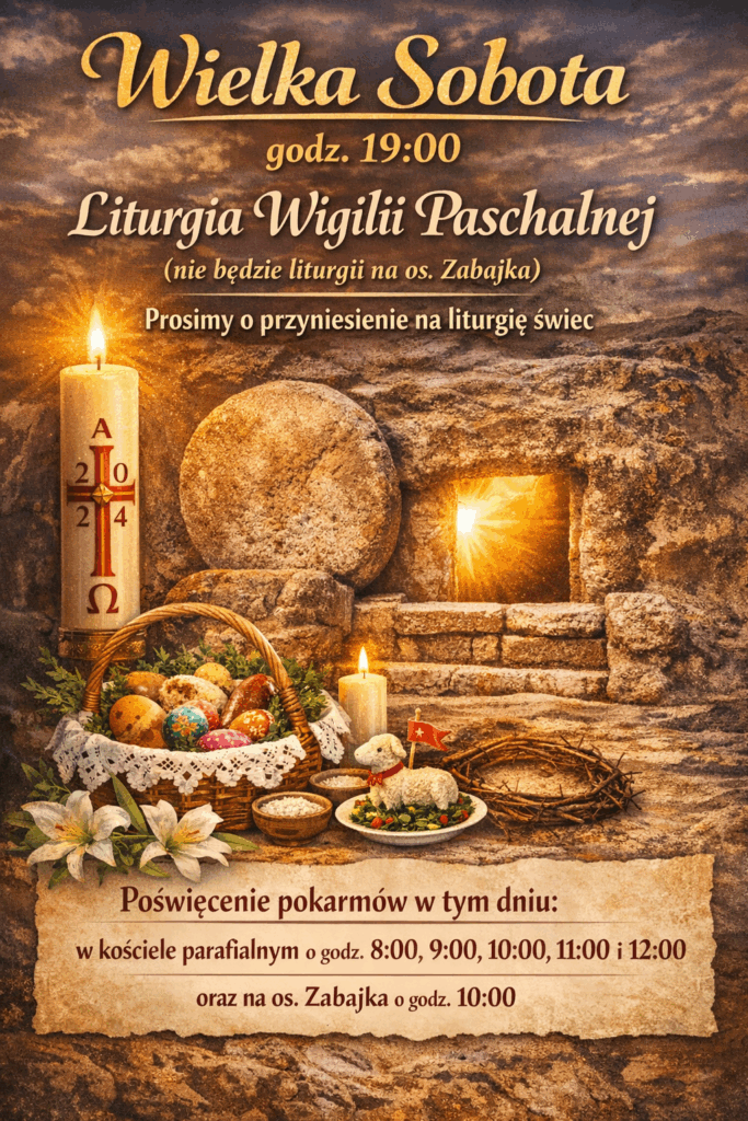 Wielka Sobota prowadzi nas do najważniejszej i najpiękniejszej liturgii w całym roku – Wigilii Paschalnej. To noc, w której ciemność ustępuje światłu, a śmierć zostaje pokonana przez życie. To noc
