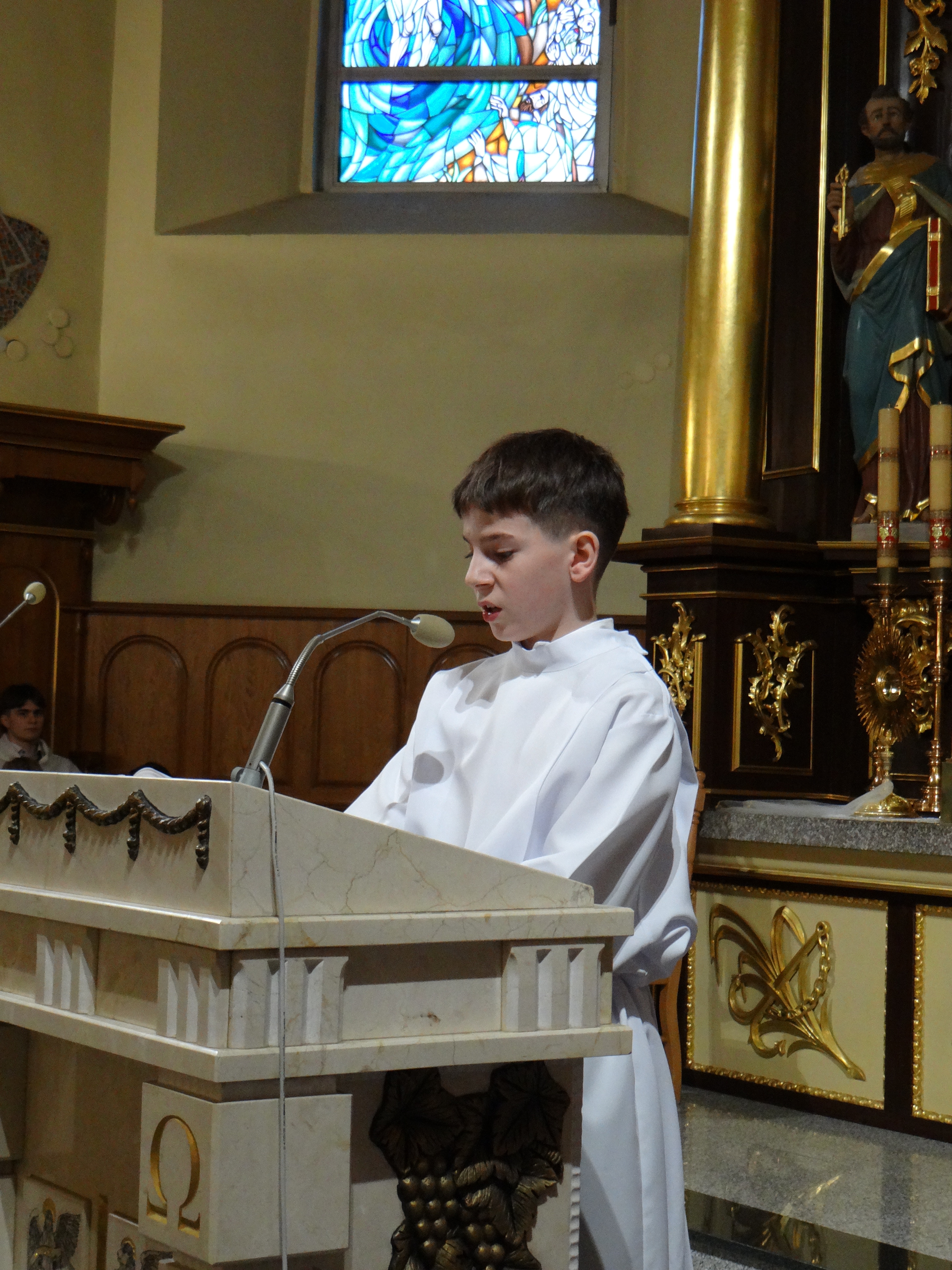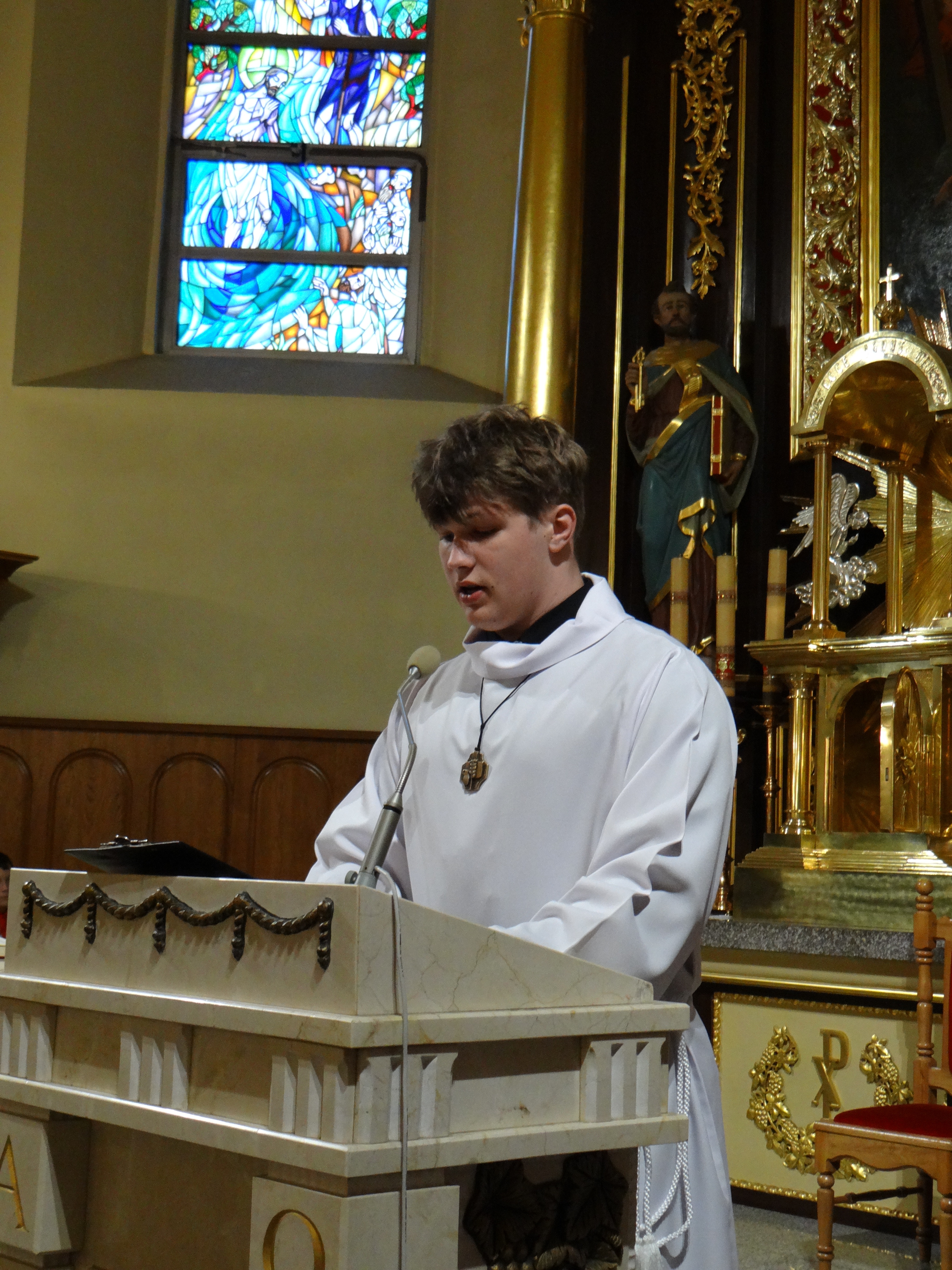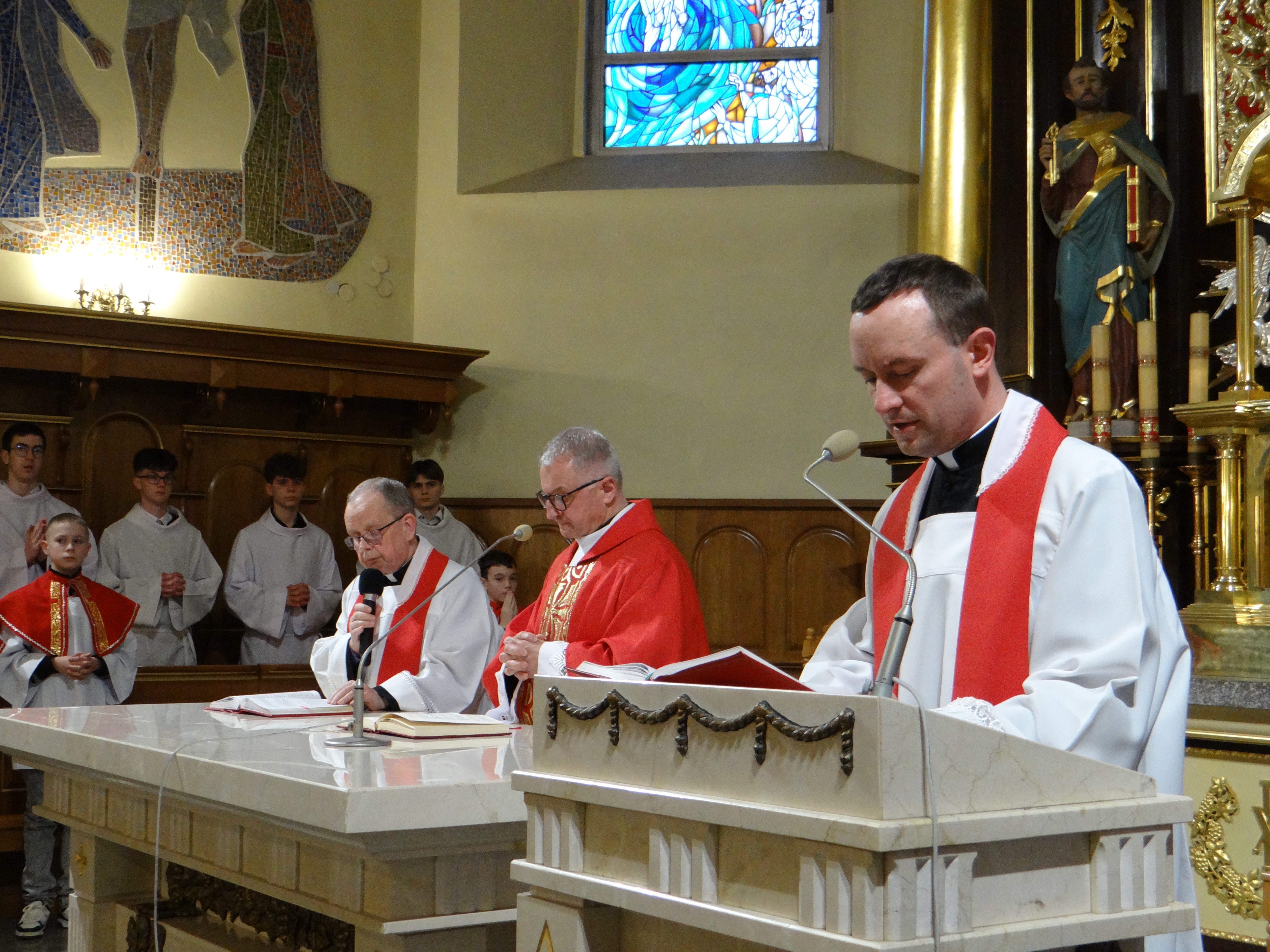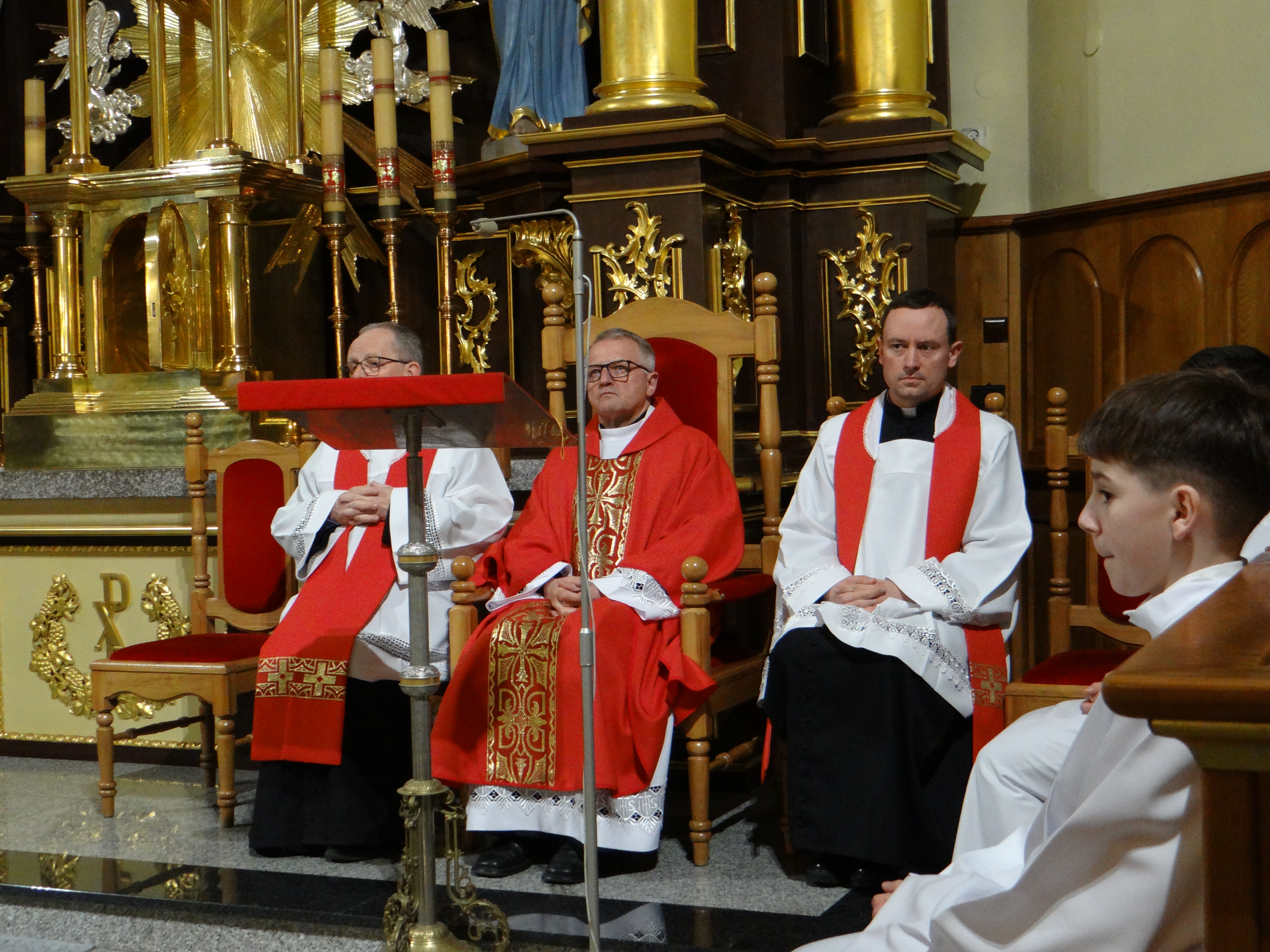 3 kwietnia, w Wielki Piątek o godz. 18:00, w naszej parafii przeżywaliśmy piękną i doniosłą Liturgię Męki Pańskiej. To wyjątkowe nabożeństwo, pełne skupienia i modlitwy, zgromadziło licznych wiernych pragnących wspólnie rozważać tajemnicę męki i śmierci Jezusa Chrystusa. Liturgia została podzielona na cztery części: liturgię słowa, adorację krzyża, Komunię Świętą oraz procesję do grobu Pańskiego. Każdy z tych elementów wprowadzał uczestników w coraz głębsze przeżywanie tajemnicy zbawienia, ukazując bezmiar miłości Boga do człowieka. Naszemu zgromadzeniu liturgicznemu przewodniczył Dziekan dekanatu Głogów Małopolski, ks. dr Stanisław Kamiński, który na co dzień posługuje jako proboszcz w parafii św. Józefa na Niwie. Homilię do zgromadzonych wygłosił wikariusz, ks. Karol Hadam, kierując do wiernych słowa zachęty do refleksji nad własnym życiem i wdzięczności za dar odkupienia. Po zakończonej liturgii wszyscy zebrani mieli możliwość osobistej modlitwy i adoracji krzyża oraz Najświętszego Sakramentu w grobie Pańskim aż do godz. 24:00. Ten czas ciszy i czuwania stał się dla wielu okazją do głębokiego spotkania z Chrystusem i powierzenia Mu swoich trosk oraz nadziei.