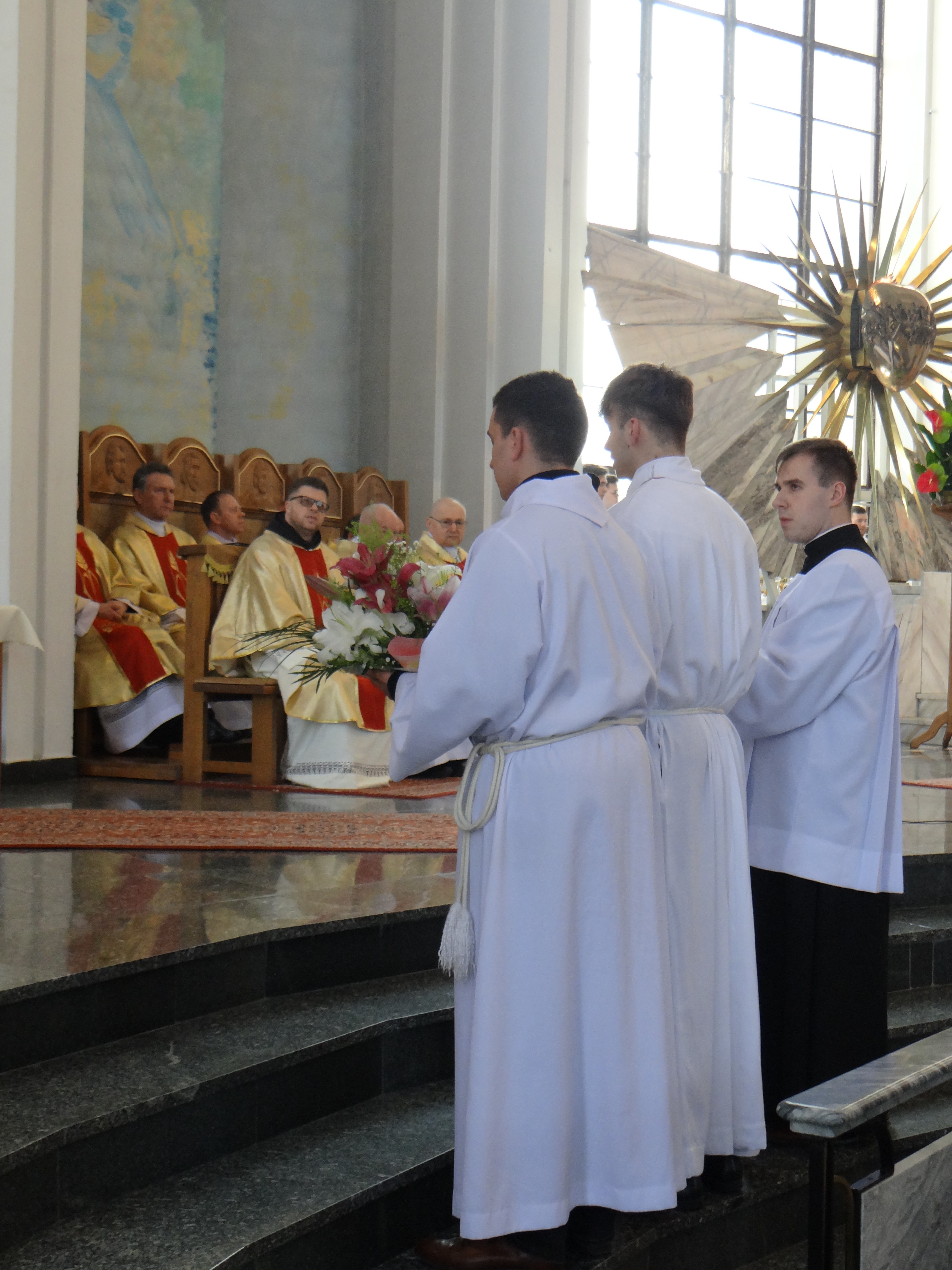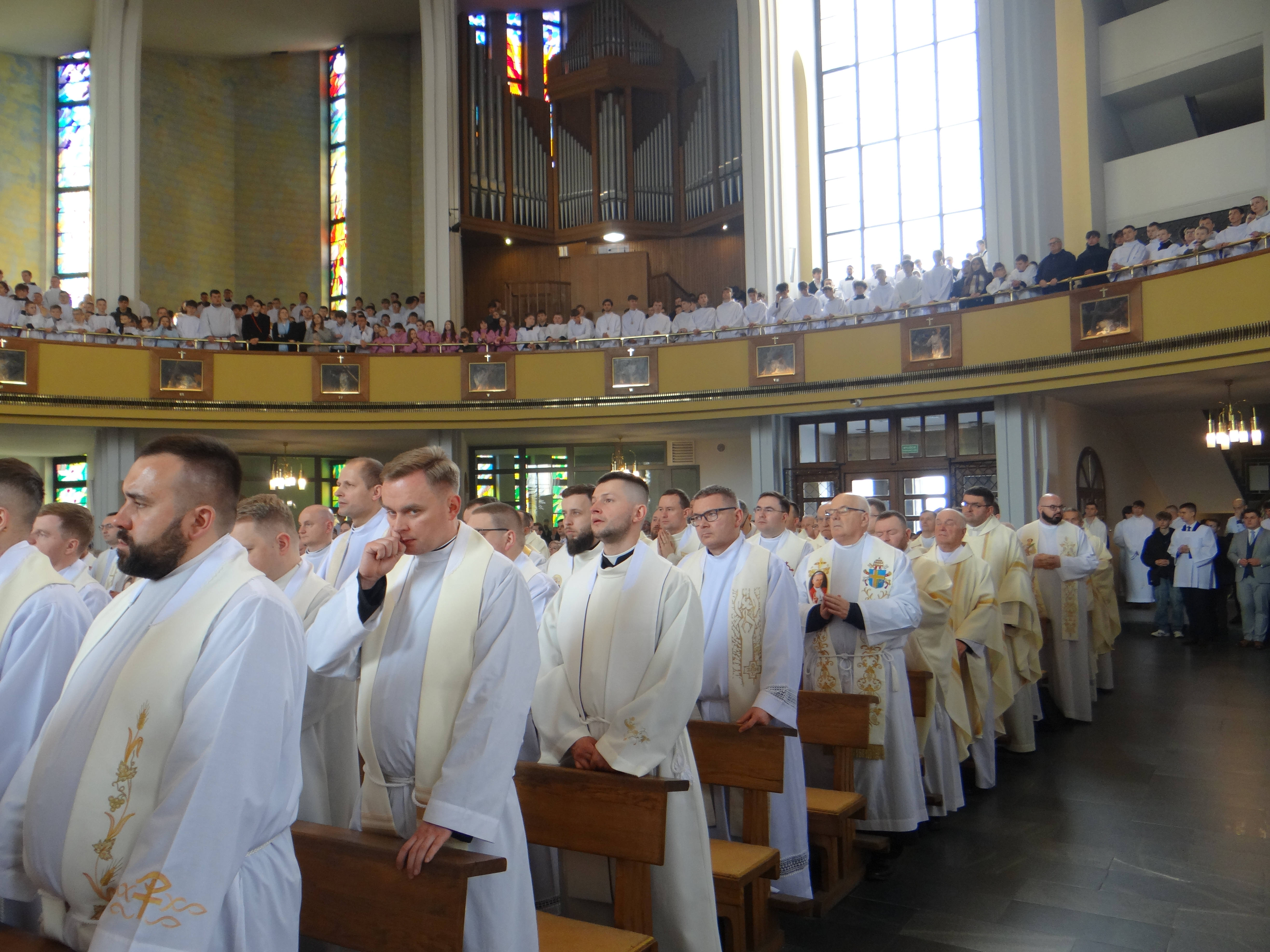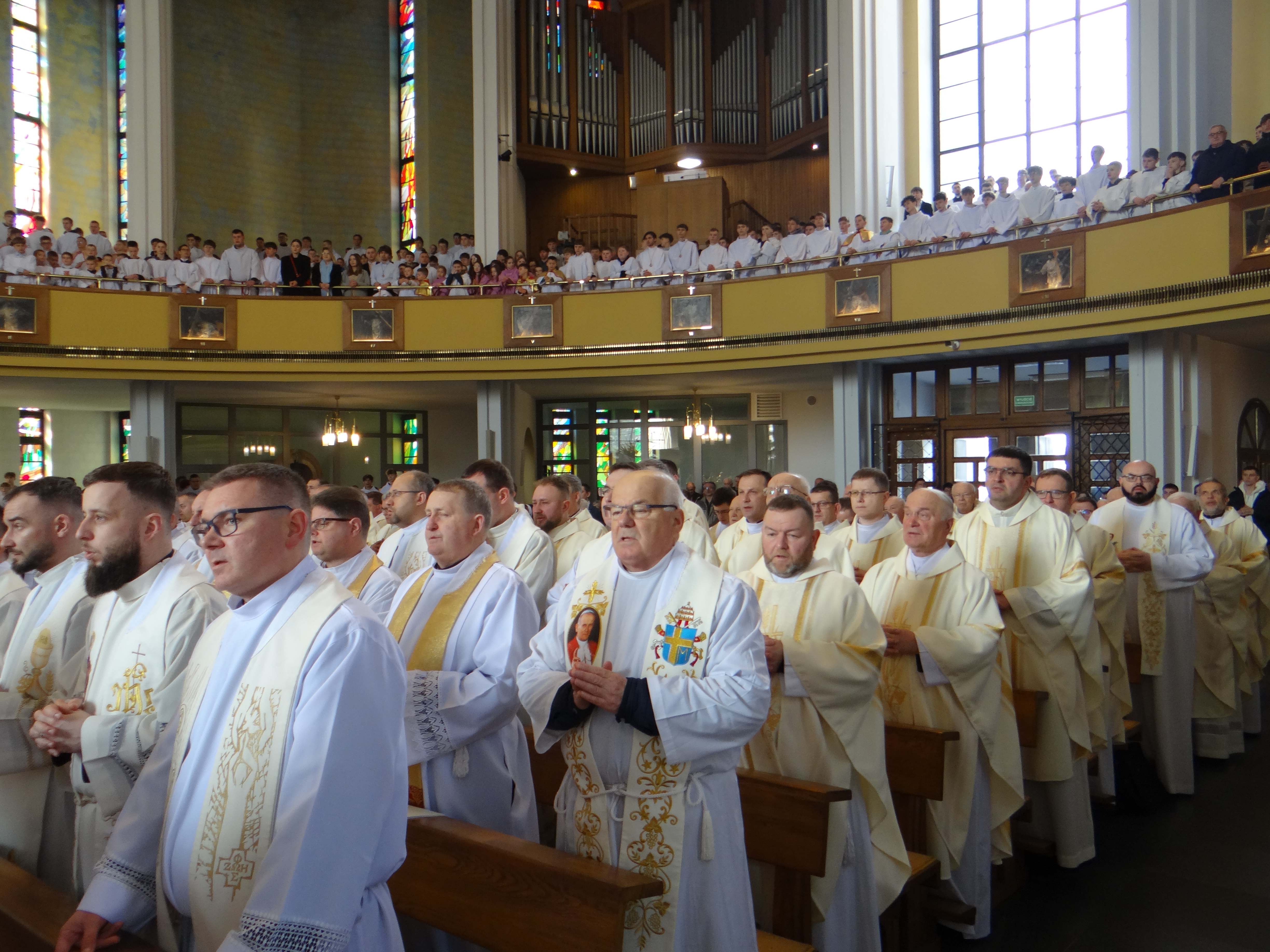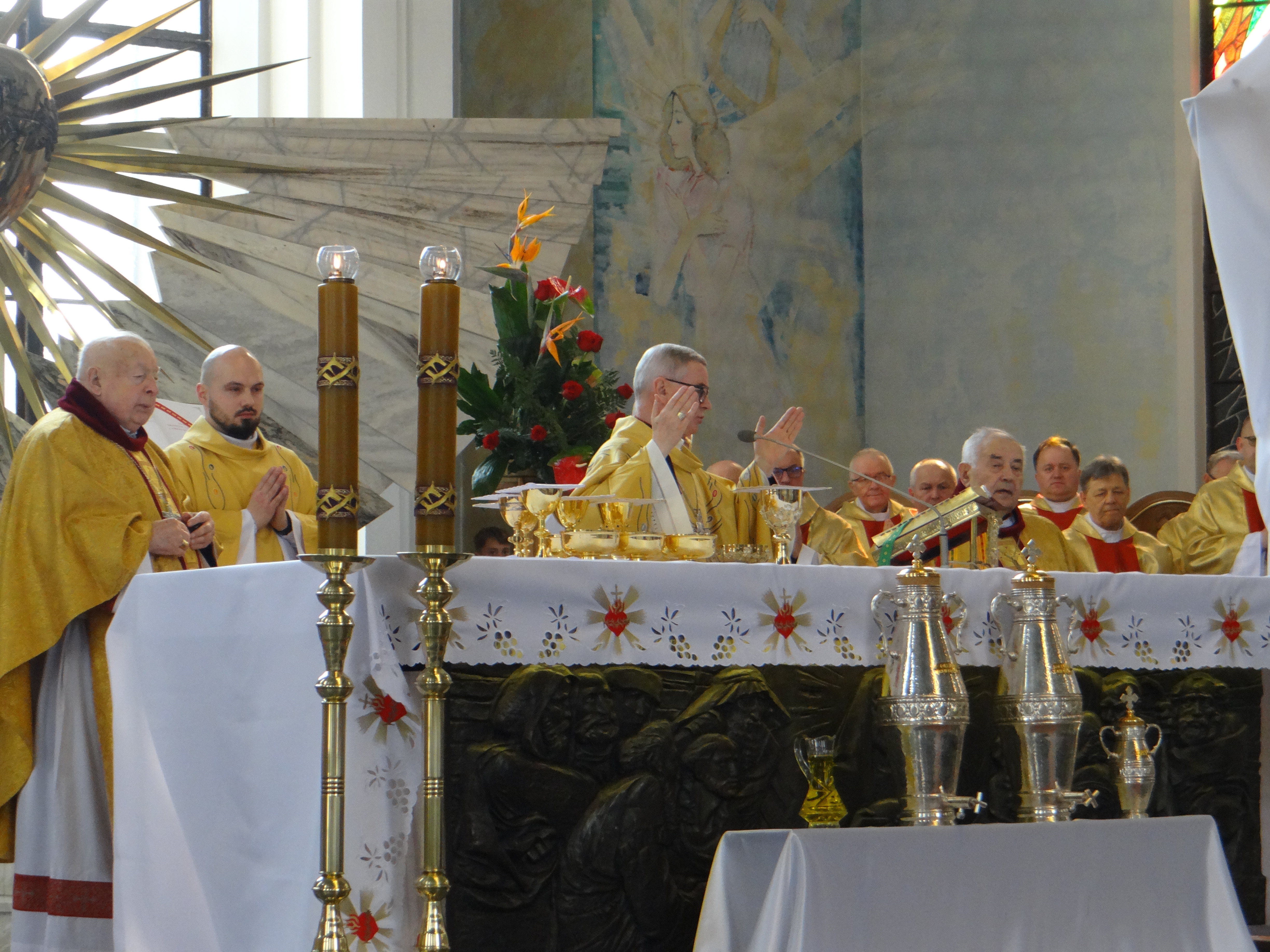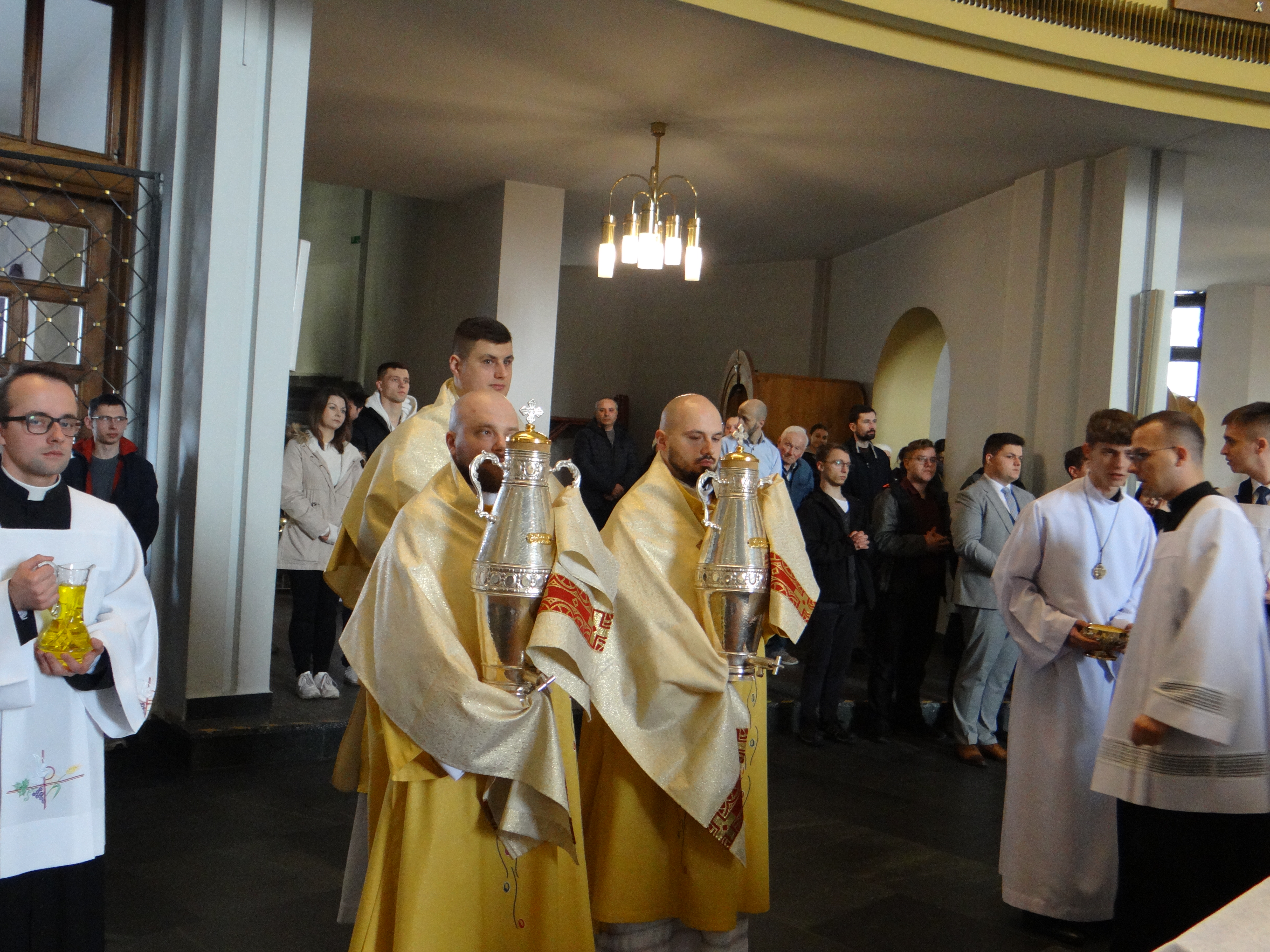 2 kwietnia, w Wielki Czwartek, Liturgiczna Służba Ołtarza oraz Dziewczęca Służba Maryjna wraz ze swoimi opiekunami z naszej parafii, a także z parafii św. Józefa na Niwie, uczestniczyli przed południem we Mszy Krzyżma w rzeszowskiej katedrze. Uroczystej liturgii przewodniczył Ksiądz Biskup Ordynariusz Jan Wątroba. Po zakończeniu Mszy Świętej mieliśmy okazję zwiedzić Wyższe Seminarium Duchowne w Rzeszowie, poznając miejsce formacji przyszłych kapłanów. W drodze powrotnej zatrzymaliśmy się na wspólny posiłek w upragnionej przez większość dzieci restauracji McDonald’s, co było miłym zwieńczeniem tego wyjątkowego dnia.