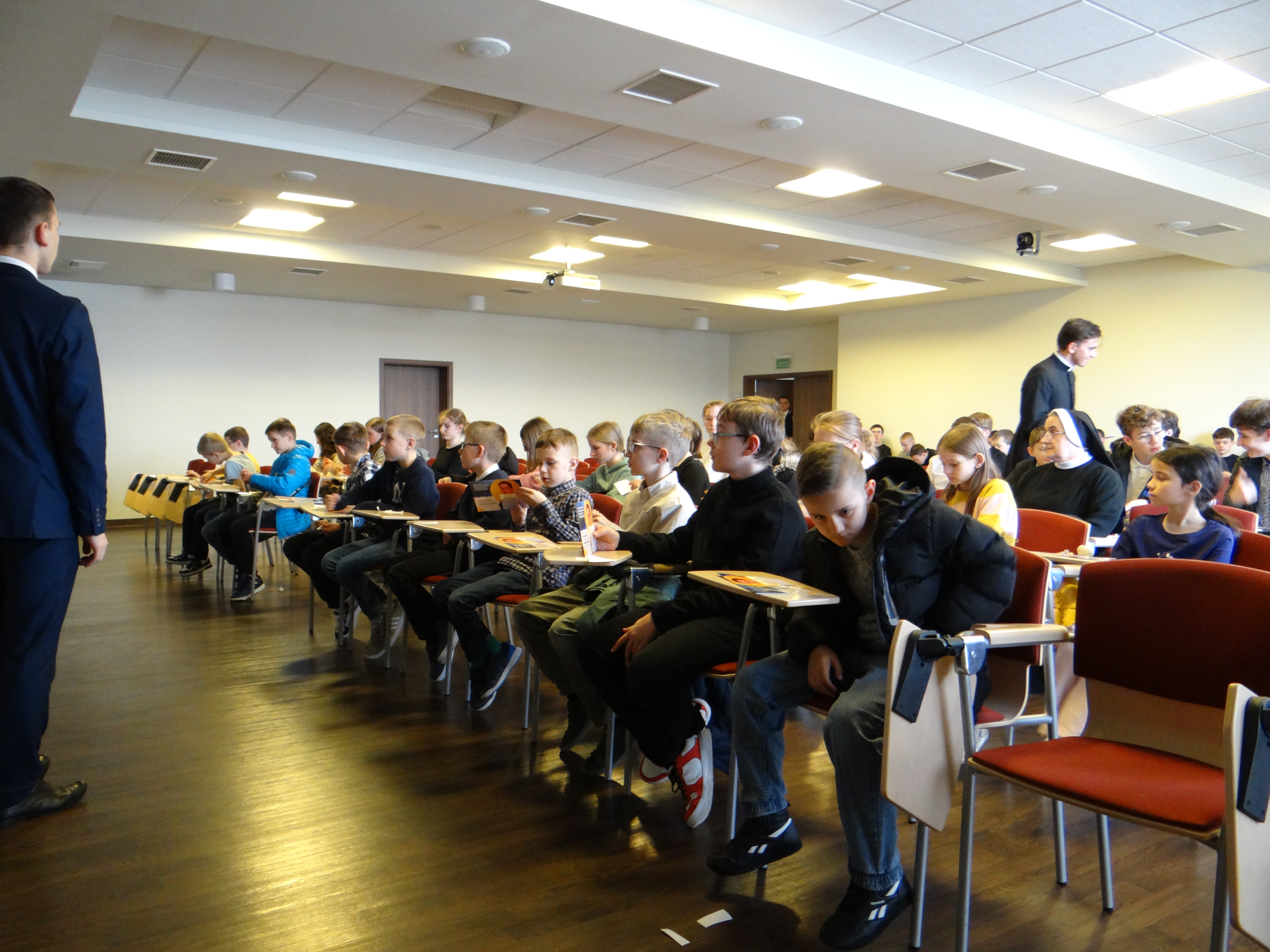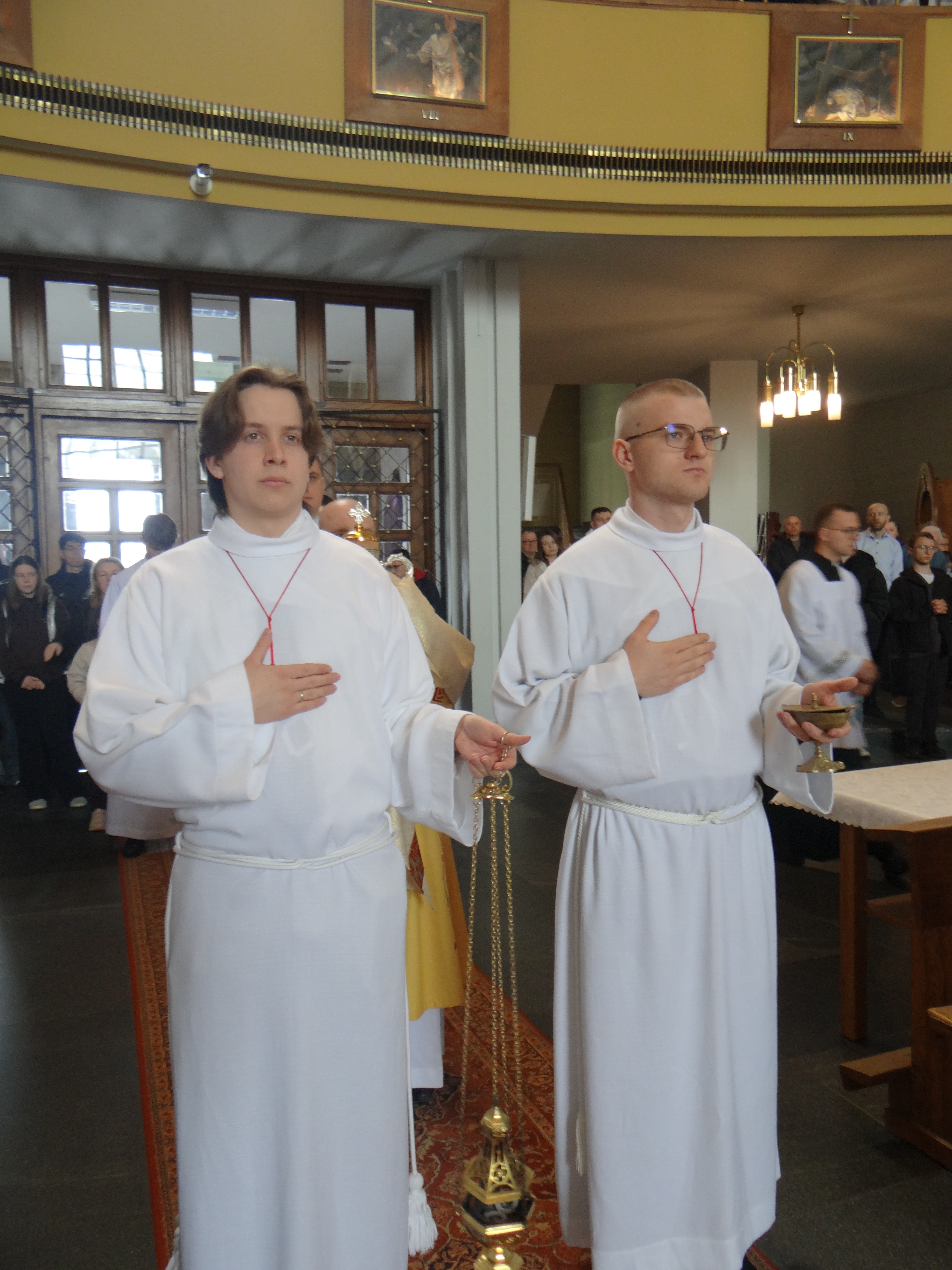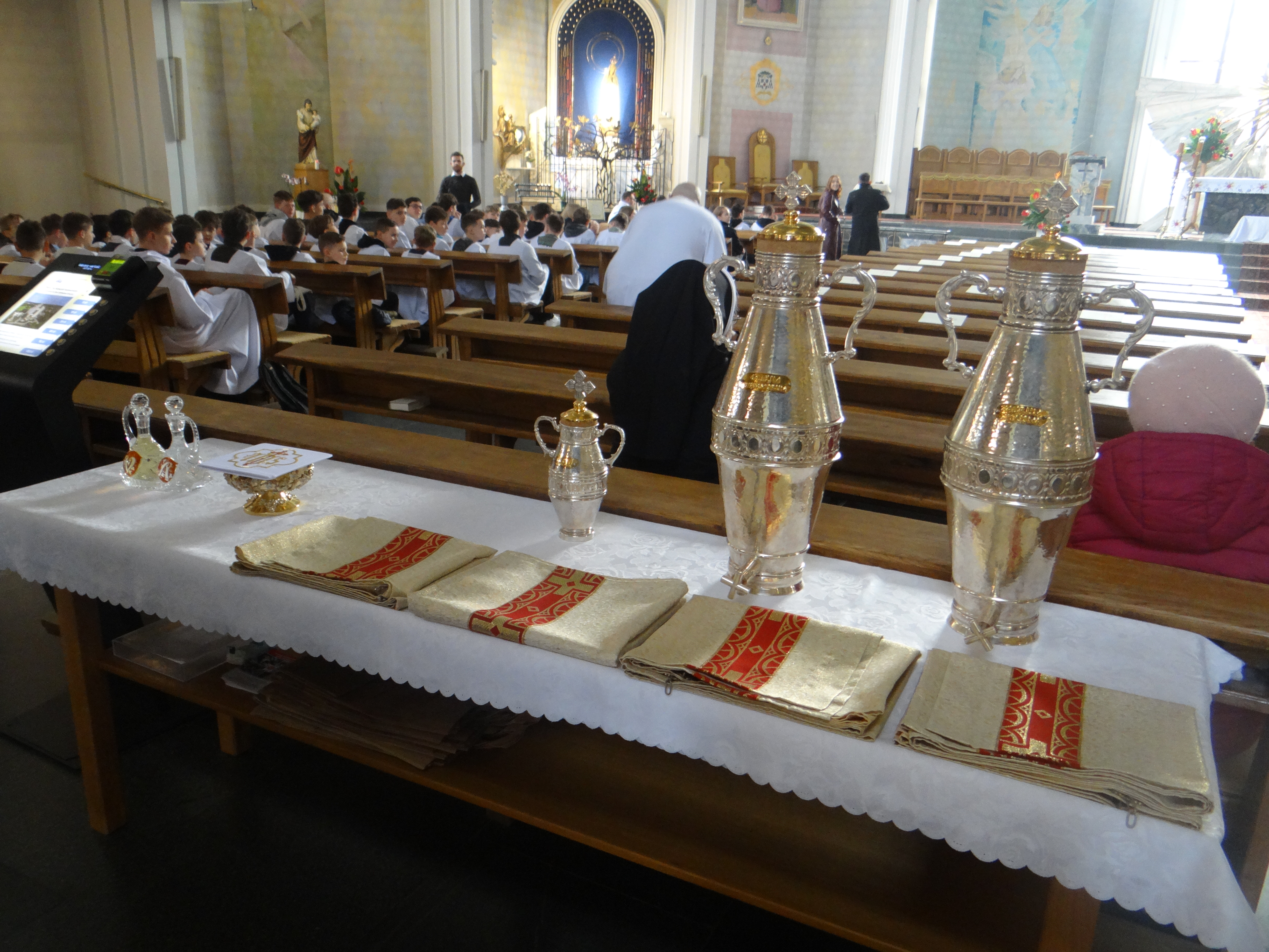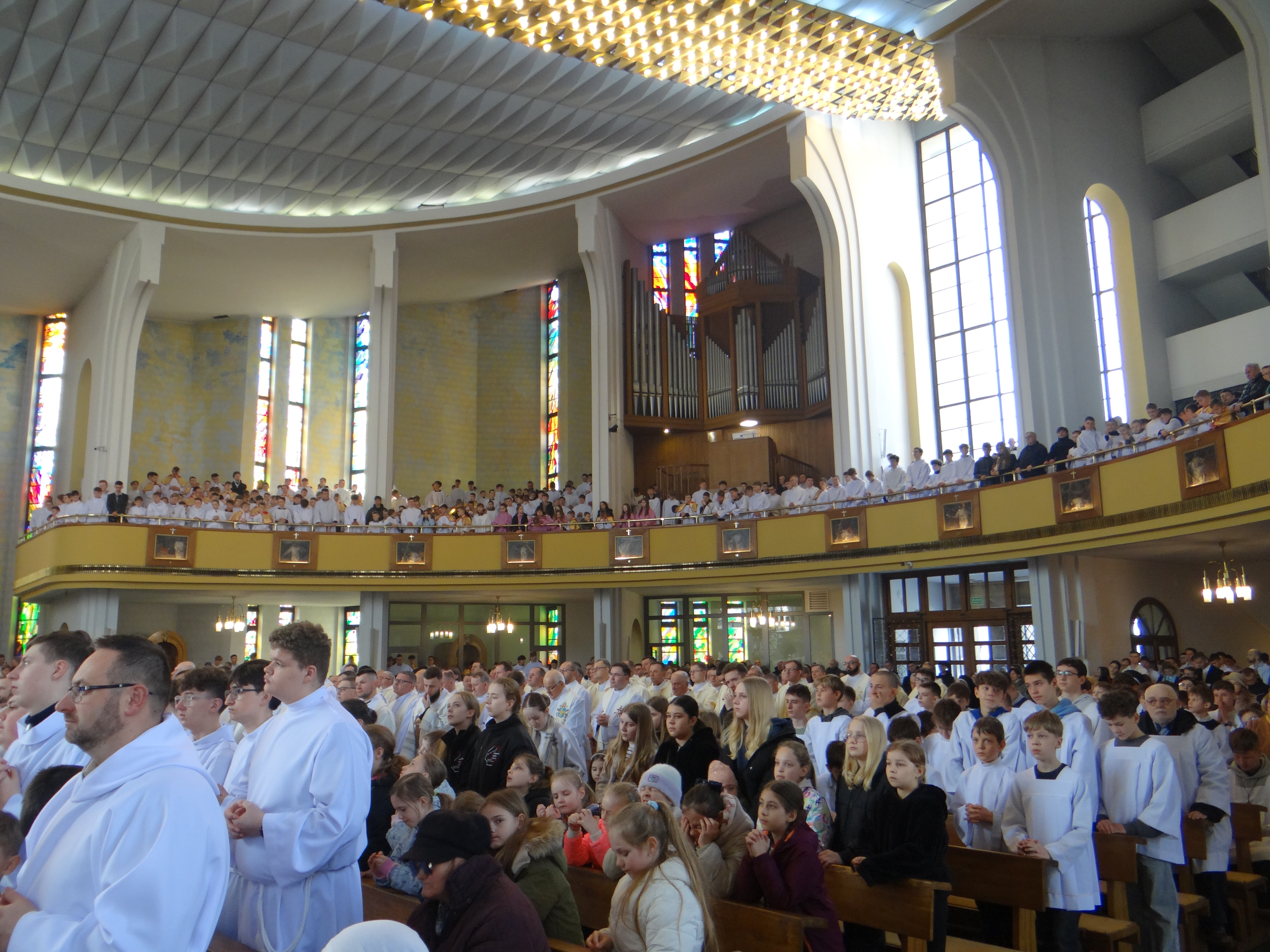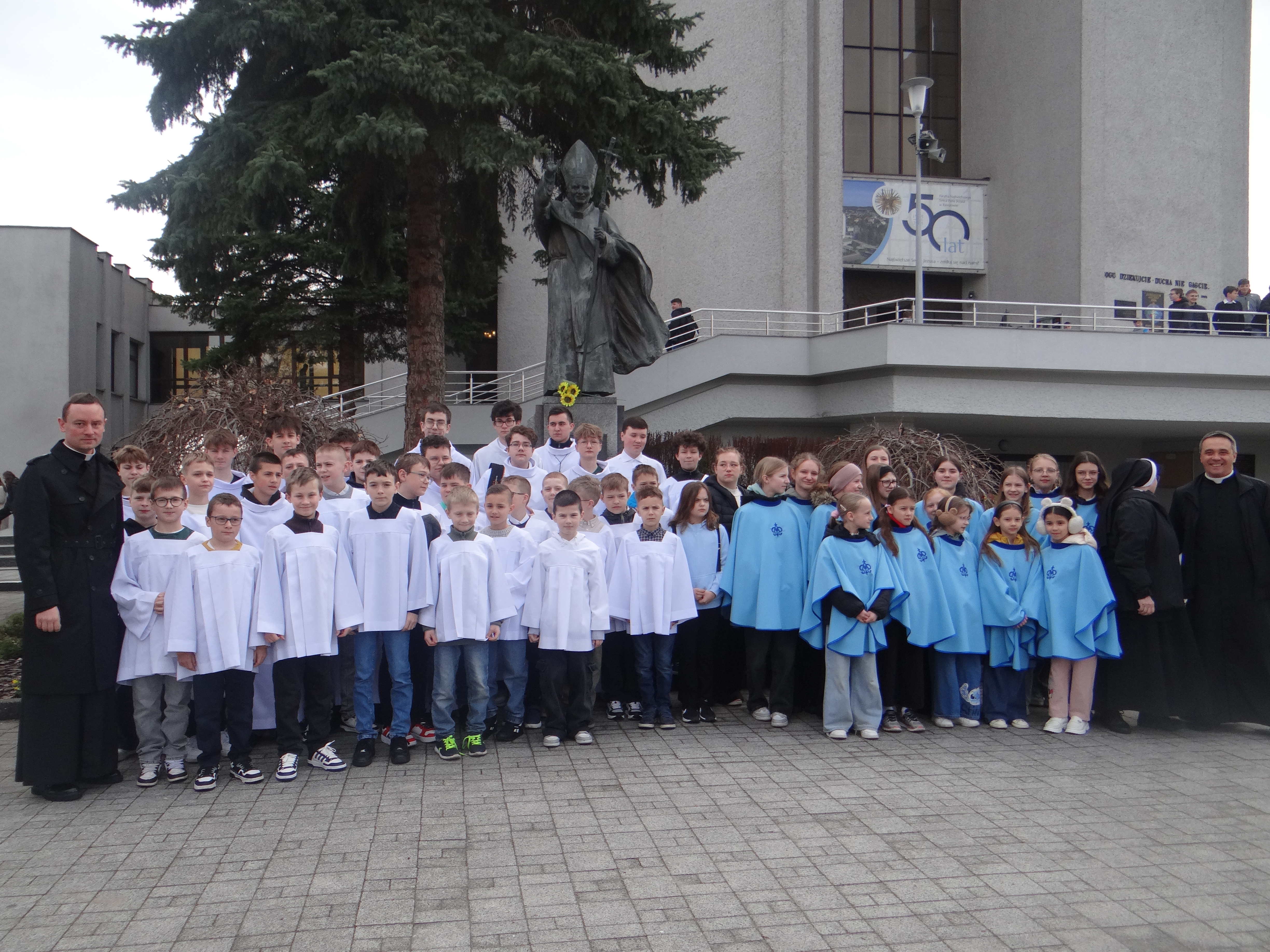 2 kwietnia, w Wielki Czwartek, Liturgiczna Służba Ołtarza oraz Dziewczęca Służba Maryjna wraz ze swoimi opiekunami z naszej parafii, a także z parafii św. Józefa na Niwie, uczestniczyli przed południem we Mszy Krzyżma w rzeszowskiej katedrze. Uroczystej liturgii przewodniczył Ksiądz Biskup Ordynariusz Jan Wątroba. Po zakończeniu Mszy Świętej mieliśmy okazję zwiedzić Wyższe Seminarium Duchowne w Rzeszowie, poznając miejsce formacji przyszłych kapłanów. W drodze powrotnej zatrzymaliśmy się na wspólny posiłek w upragnionej przez większość dzieci restauracji McDonald’s, co było miłym zwieńczeniem tego wyjątkowego dnia.