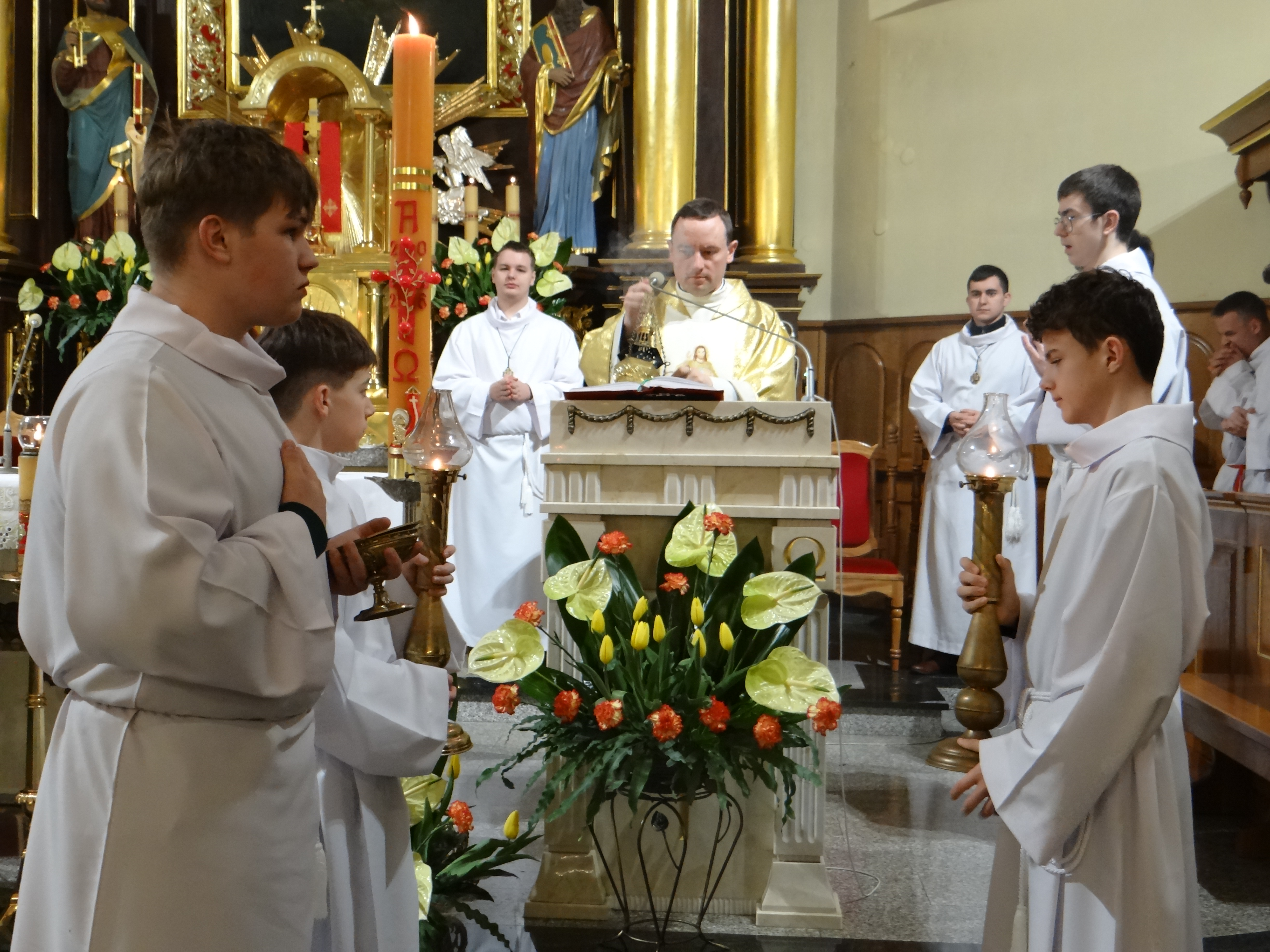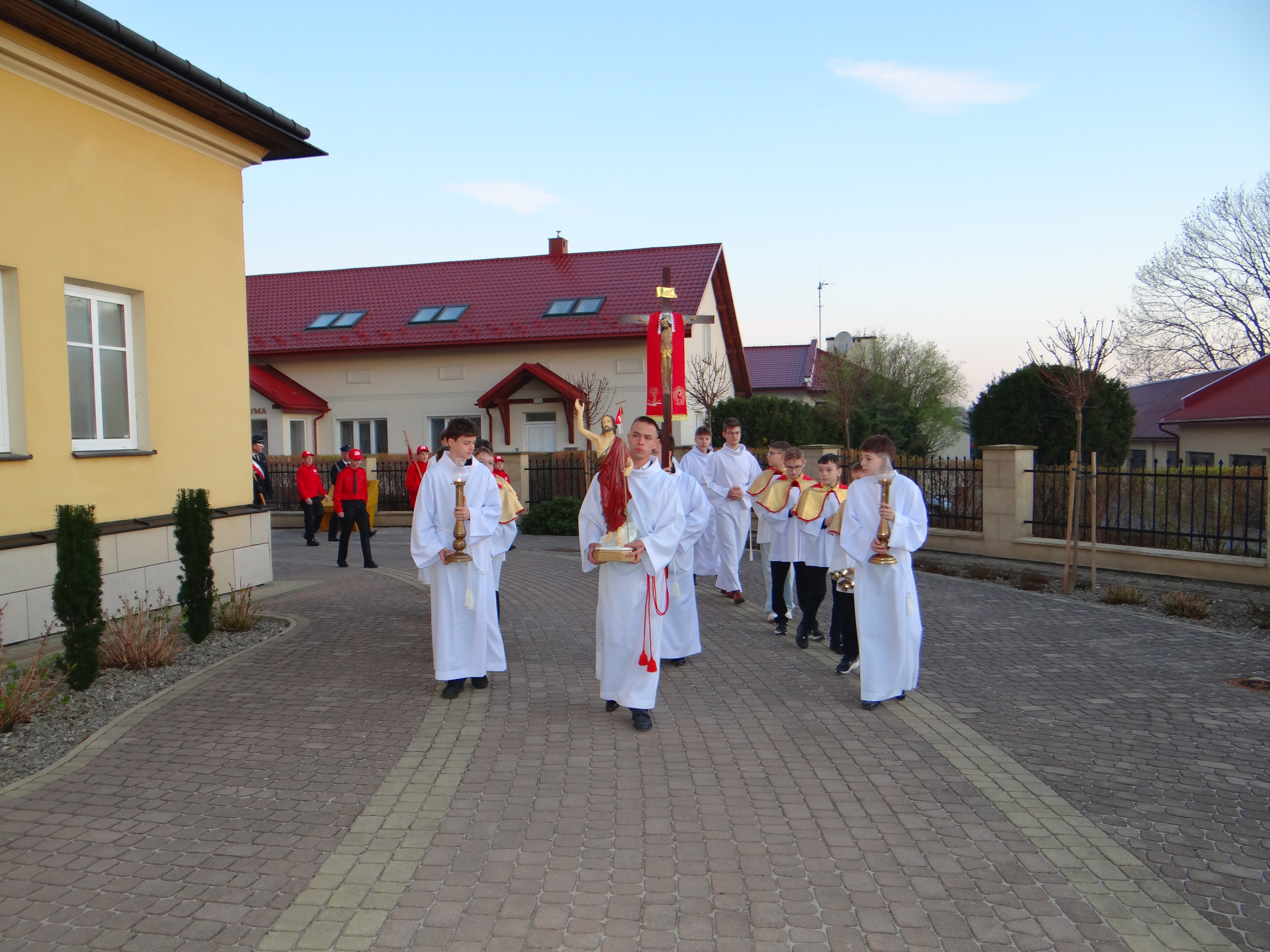 W niedzielny poranek, punktualnie o godzinie 6:00, w naszej parafii odbyła się uroczysta Msza Święta Rezurekcyjna, będąca radosnym ogłoszeniem Zmartwychwstania Pańskiego. Liturgia rozpoczęła się procesją rezurekcyjną wokół kościoła, w której licznie uczestniczyli wierni, dając świadectwo swojej wiary i przywiązania do wielkanocnej tradycji. Na czele procesji niesiona była figura Chrystusa Zmartwychwstałego, symbolizująca zwycięstwo życia nad śmiercią. Towarzyszył jej Najświętszy Sakrament, niesiony przez kapłana pod baldachimem. Wspólna modlitwa, śpiew oraz dźwięk dzwonków podkreślały podniosły charakter tego wyjątkowego wydarzenia. Po zakończeniu procesji wierni zgromadzili się w świątyni, gdzie została odprawiona uroczysta Msza Święta. Liturgii przewodniczył Ksiądz Prałat, który podczas homilii przypomniał o istocie Zmartwychwstania jako fundamentu naszej wiary. Podkreślił m.in. że pusty grób jest znakiem nadziei, a Chrystus Zmartwychwstały zaprasza każdego człowieka do nowego życia, wolnego od grzechu i lęku. Dzisiejsza celebracja była dla całej wspólnoty parafialnej głębokim przeżyciem duchowym oraz okazją do odnowienia wiary i nadziei płynącej z tajemnicy Zmartwychwstania. Niech radość wielkanocnego poranka trwa w naszych sercach każdego dnia.