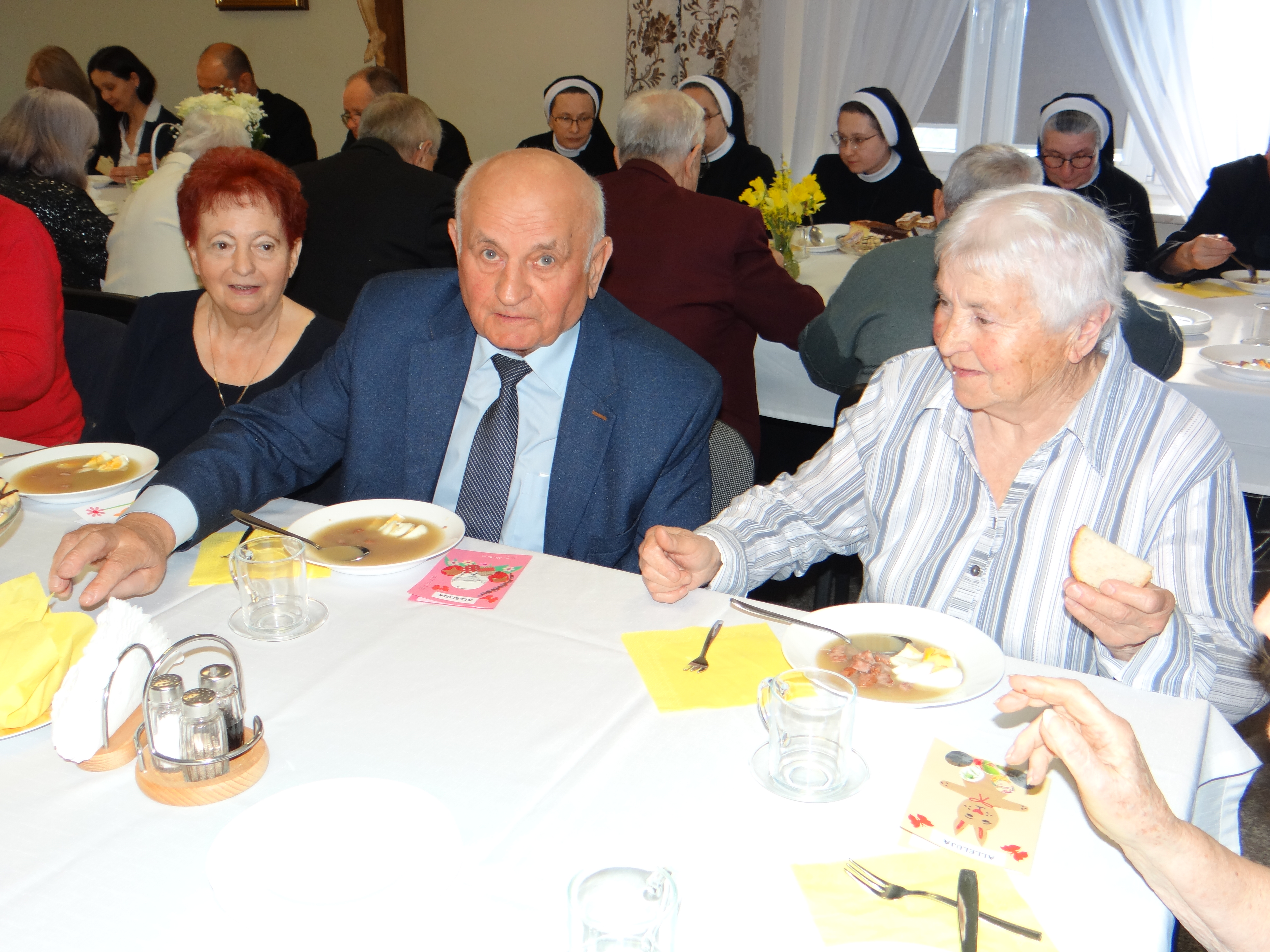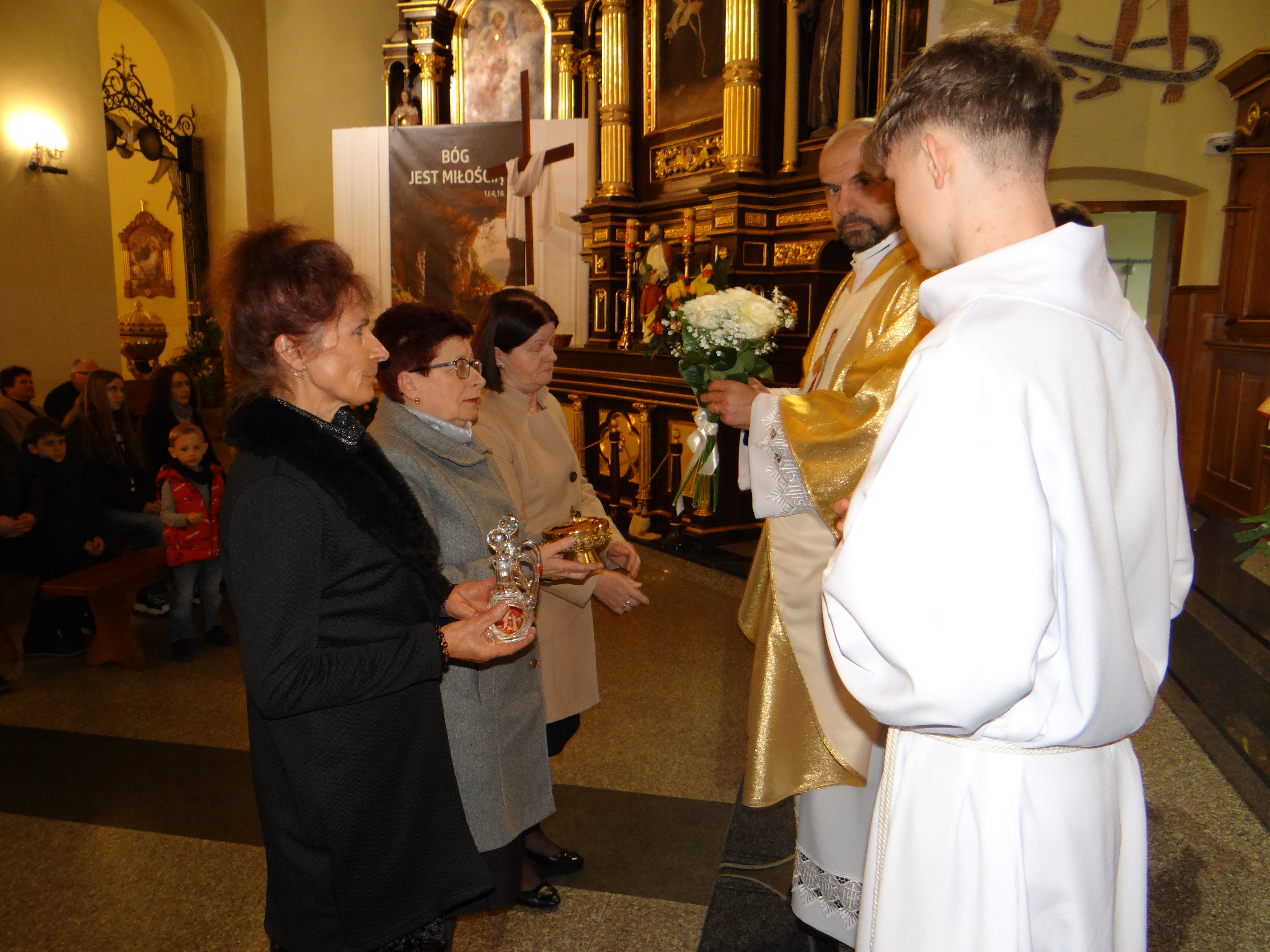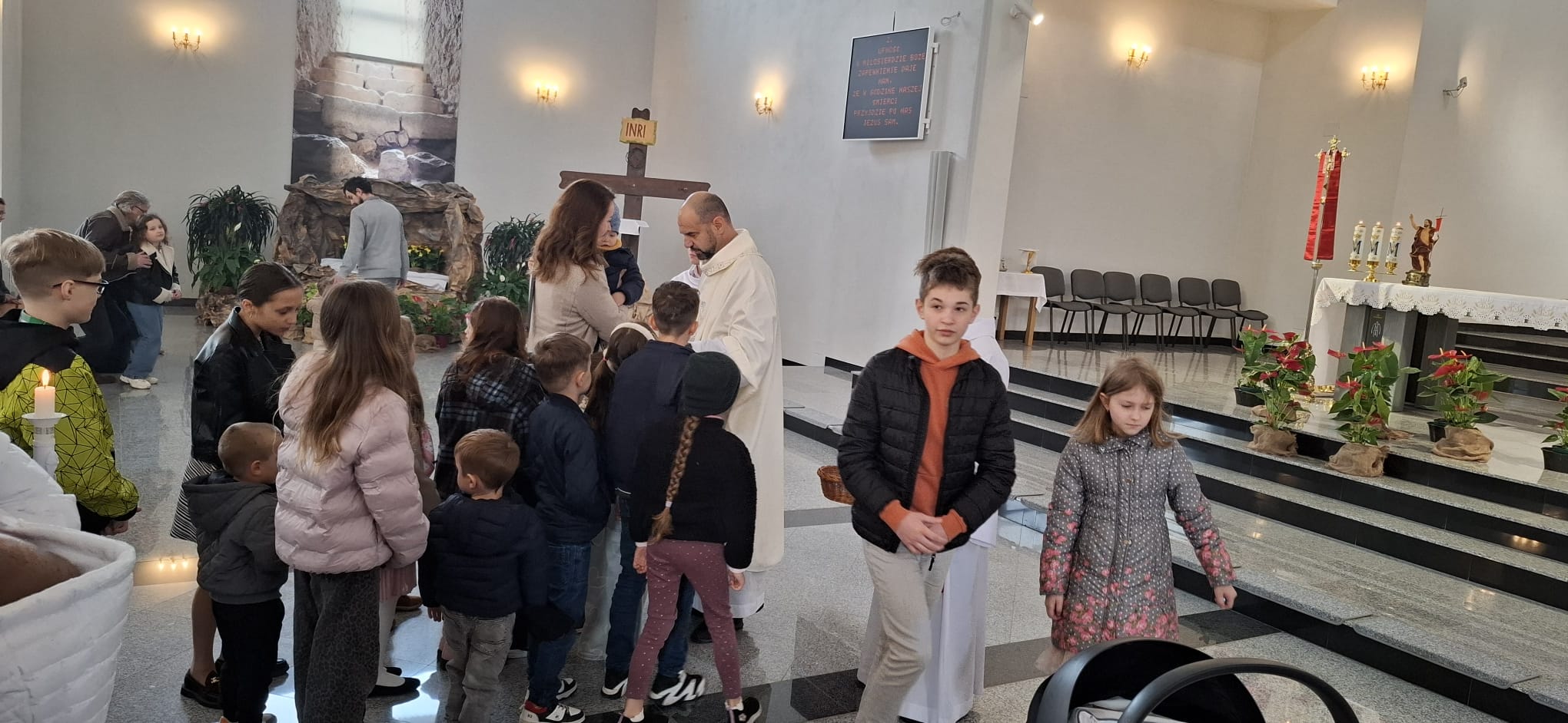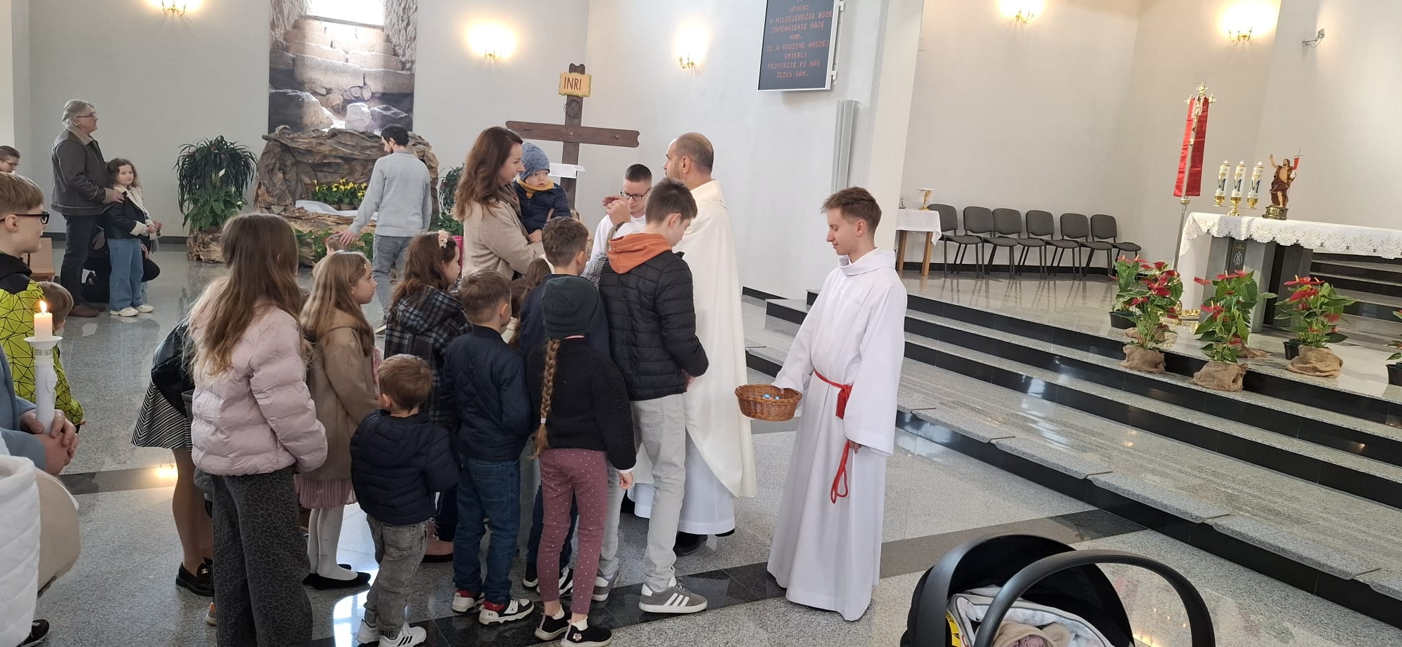 Dzisiaj w naszej parafii, podobnie jak w całym Kościele powszechnym, obchodziliśmy Niedzielę Miłosierdzia, ustanowioną przez papieża Jana Pawła II. Był to szczególny dzień, który przypomniał nam o ogromie Bożej miłości i przebaczenia, jakie każdy człowiek może odnaleźć w swoim życiu. Podczas wszystkich Mszy Świętych kapłani przybliżali wiernym tematykę Bożego miłosierdzia, ukazując jego znaczenie w codziennym życiu. Homilie skłaniały do refleksji nad tym, jak ważne jest zaufanie Bogu, otwartość na drugiego człowieka oraz gotowość do przebaczania. Centralnym punktem dzisiejszego dnia było nabożeństwo do Bożego Miłosierdzia, które rozpoczęło się o godzinie 15:00 w kościele parafialnym. Przy licznym udziale wiernych zgromadzonych przed Najświętszym Sakramentem odmawiana była koronka do Bożego miłosierdzia, przeplatana poruszającymi fragmentami z „Dzienniczka” św. siostry Faustyny. Modlitwa ta wprowadziła wszystkich w atmosferę skupienia, ufności i głębokiego zawierzenia Bożej dobroci. Bezpośrednio po nabożeństwie została odprawiona Msza Święta, która stanowiła zwieńczenie wspólnego świętowania tego wyjątkowego dnia. Po Eucharystii parafialny zespół Caritas zaprosił wszystkich zaangażowanych oraz wspierających działalność charytatywną na poczęstunek w domu pielgrzyma. Był to czas radości, wdzięczności i budowania wspólnoty – okazja do spotkania, rozmów oraz podziękowania za dobro, które dokonuje się w naszej lokalnej społeczności. Dzisiejsza Niedziela Miłosierdzia była nie tylko czasem modlitwy, ale także przypomnieniem, że miłosierdzie powinno przenikać nasze codzienne życie – w gestach, słowach i postawach wobec drugiego człowieka.