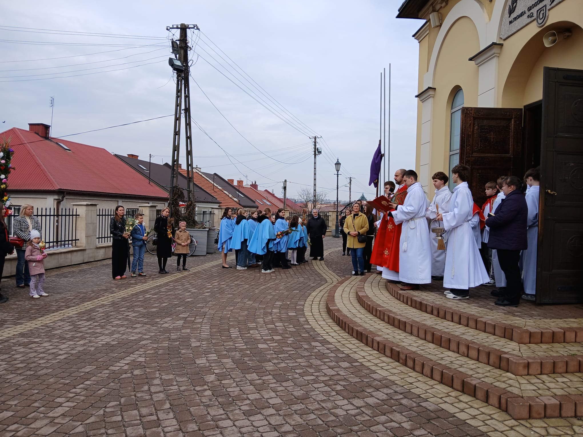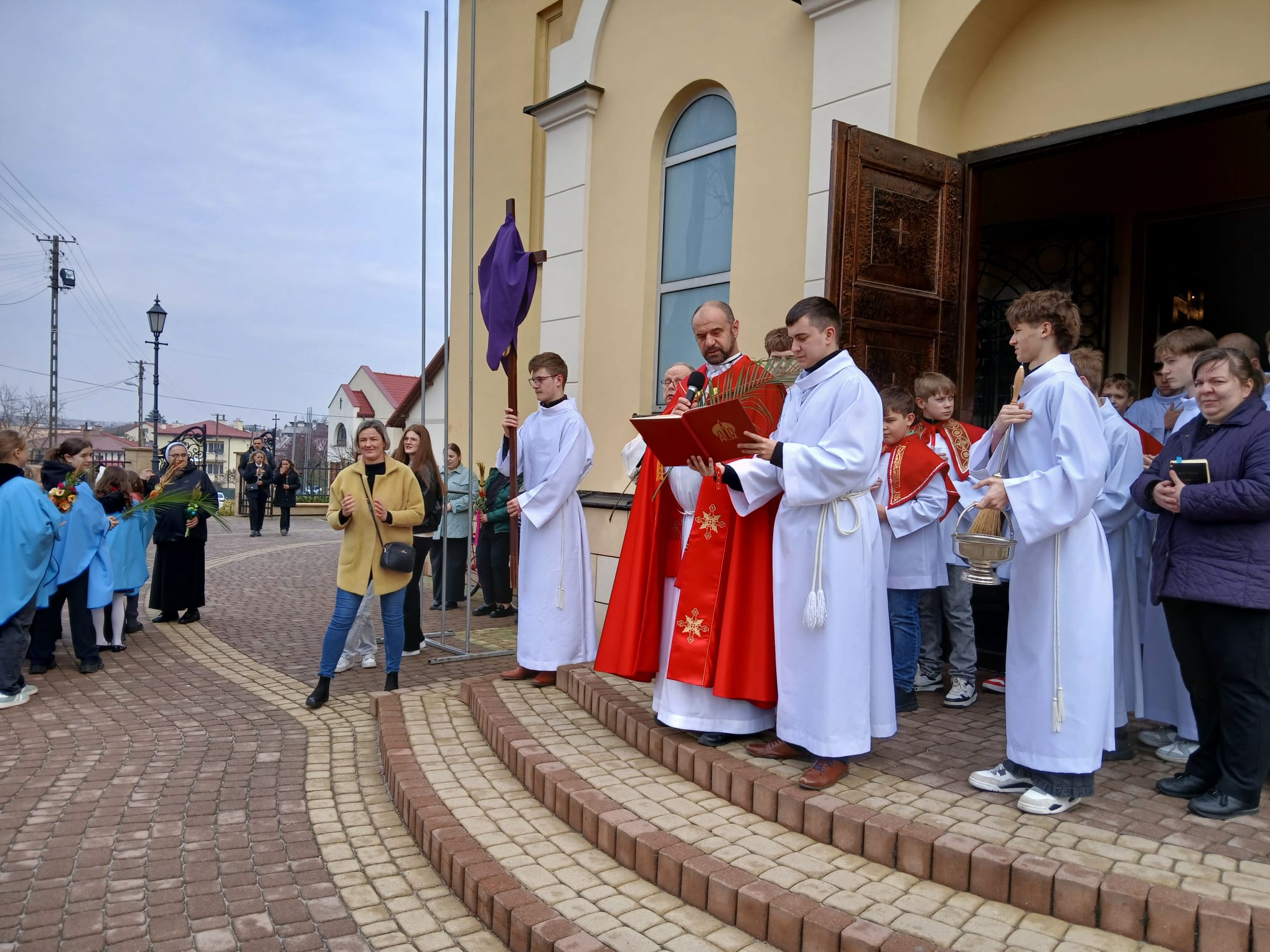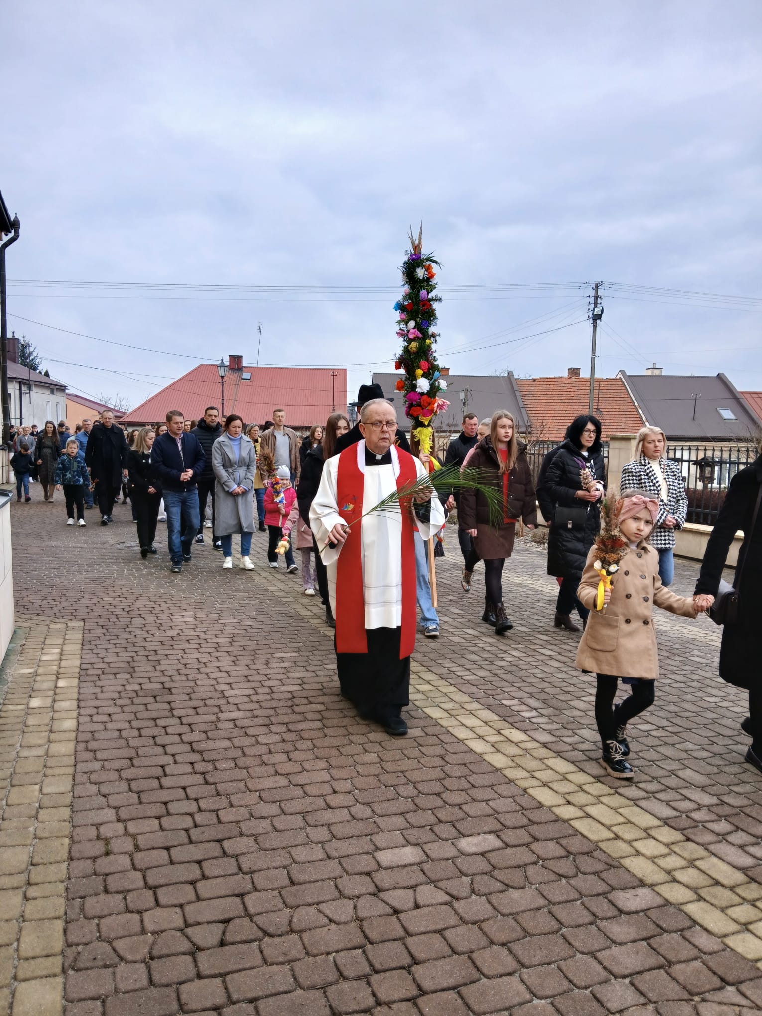 29 marca w całym Kościele powszechnym obchodziliśmy Niedzielę Palmową, która rozpoczyna Wielki Tydzień – czas szczególnej refleksji nad męką, śmiercią i zmartwychwstaniem Chrystusa. Również w naszej parafii wierni licznie zgromadzili się na liturgii, przynosząc ze sobą tradycyjne palmy – znak odradzającego się życia oraz hołdu oddawanego Jezusowi. Zgodnie z wielowiekową tradycją, na każdej Mszy Świętej odbyło się uroczyste poświęcenie palm. Centralnym punktem dnia była Msza Święta o godz. 11:00, która miała szczególnie podniosły charakter. Liturgia rozpoczęła się na zewnątrz świątyni, gdzie odczytano fragment Ewangelii opisujący uroczysty wjazd Pana Jezusa do Jerozolimy. Zgromadzeni wierni, trzymając w dłoniach palmy, włączyli się w to symboliczne wydarzenie, wyrażając swoją wiarę i jedność z Chrystusem. Po odczytaniu Ewangelii wszyscy uczestnicy wyruszyli w procesji do kościoła. Ten uroczysty pochód był nie tylko nawiązaniem do wydarzeń sprzed dwóch tysięcy lat, ale także wyrazem naszej gotowości do towarzyszenia Jezusowi w Jego drodze przez mękę aż do chwały zmartwychwstania. Dziękujemy wszystkim parafianom za wspólne przeżywanie tej wyjątkowej liturgii oraz za piękne świadectwo wiary. Niech rozpoczęty Wielki Tydzień będzie dla nas czasem duchowego odnowienia i głębokiego przygotowania do Świąt Zmartwychwstania Pańskiego.
