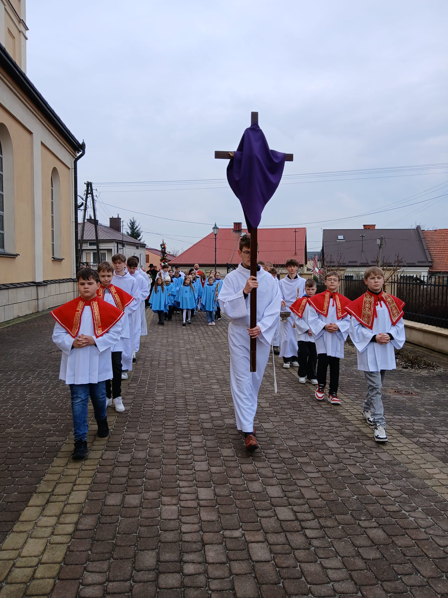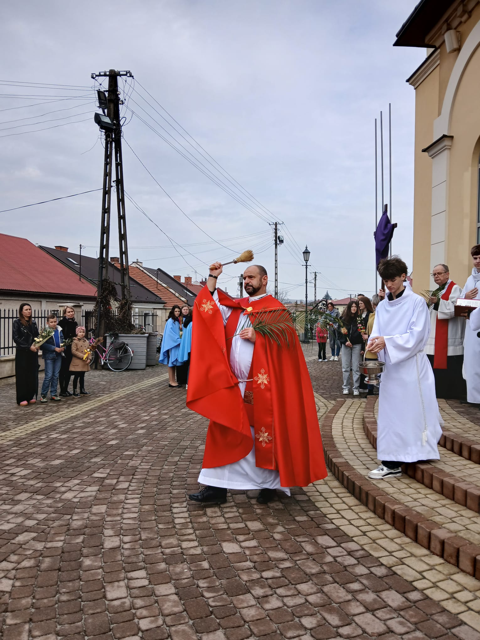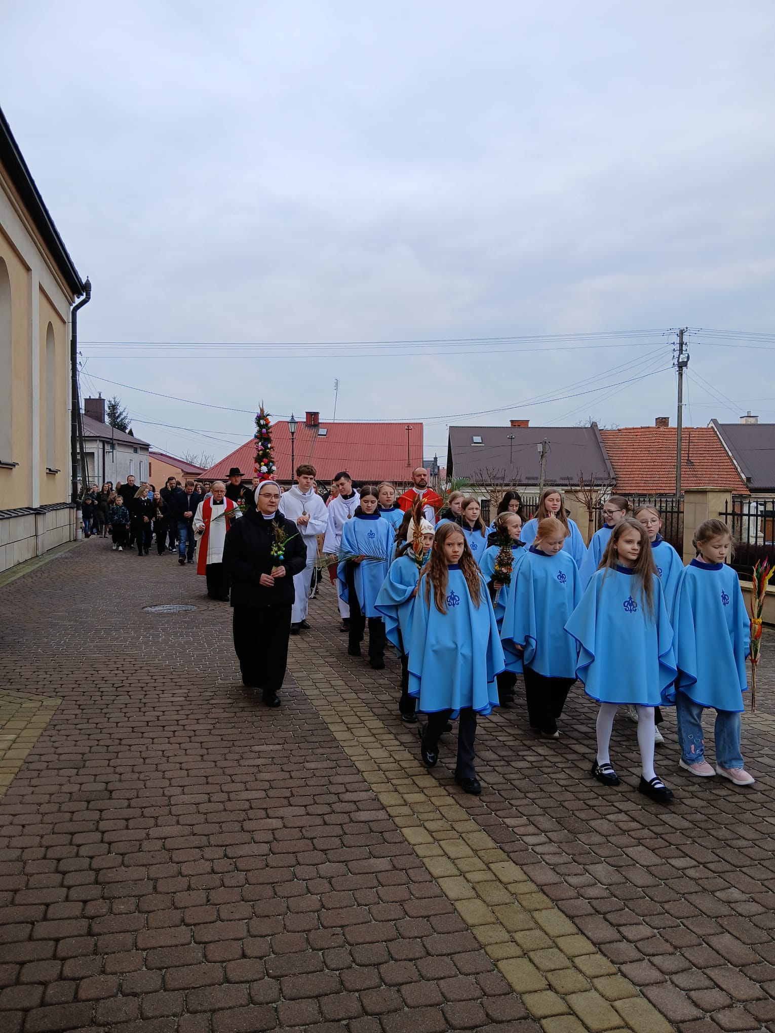 29 marca w całym Kościele powszechnym obchodziliśmy Niedzielę Palmową, która rozpoczyna Wielki Tydzień – czas szczególnej refleksji nad męką, śmiercią i zmartwychwstaniem Chrystusa. Również w naszej parafii wierni licznie zgromadzili się na liturgii, przynosząc ze sobą tradycyjne palmy – znak odradzającego się życia oraz hołdu oddawanego Jezusowi. Zgodnie z wielowiekową tradycją, na każdej Mszy Świętej odbyło się uroczyste poświęcenie palm. Centralnym punktem dnia była Msza Święta o godz. 11:00, która miała szczególnie podniosły charakter. Liturgia rozpoczęła się na zewnątrz świątyni, gdzie odczytano fragment Ewangelii opisujący uroczysty wjazd Pana Jezusa do Jerozolimy. Zgromadzeni wierni, trzymając w dłoniach palmy, włączyli się w to symboliczne wydarzenie, wyrażając swoją wiarę i jedność z Chrystusem. Po odczytaniu Ewangelii wszyscy uczestnicy wyruszyli w procesji do kościoła. Ten uroczysty pochód był nie tylko nawiązaniem do wydarzeń sprzed dwóch tysięcy lat, ale także wyrazem naszej gotowości do towarzyszenia Jezusowi w Jego drodze przez mękę aż do chwały zmartwychwstania. Dziękujemy wszystkim parafianom za wspólne przeżywanie tej wyjątkowej liturgii oraz za piękne świadectwo wiary. Niech rozpoczęty Wielki Tydzień będzie dla nas czasem duchowego odnowienia i głębokiego przygotowania do Świąt Zmartwychwstania Pańskiego.