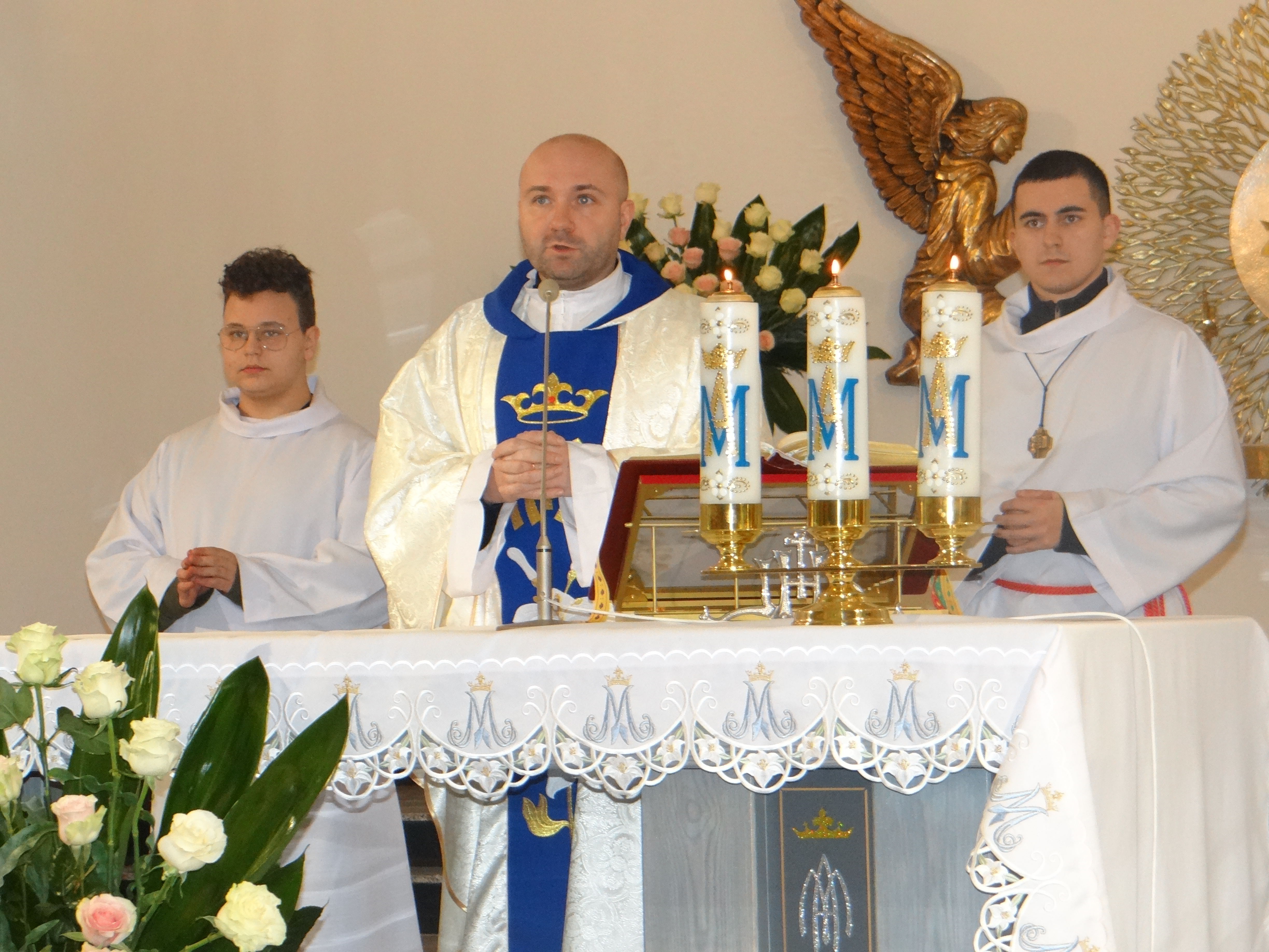 Mszy Świętej odpustowej przewodniczył ks. Wojciech Chrostowski, były wikariusz naszej parafii. Uroczystość przebiegła w atmosferze modlitwy, wdzięczności i jedności. Była ona dla naszej parafii nie tylko wydarzeniem liturgicznym, lecz także czasem duchowej odnowy. Każdego roku przypomina nam, że w Maryi otrzymujemy orędowniczkę i przewodniczkę, która prowadzi nas do swojego Syna.