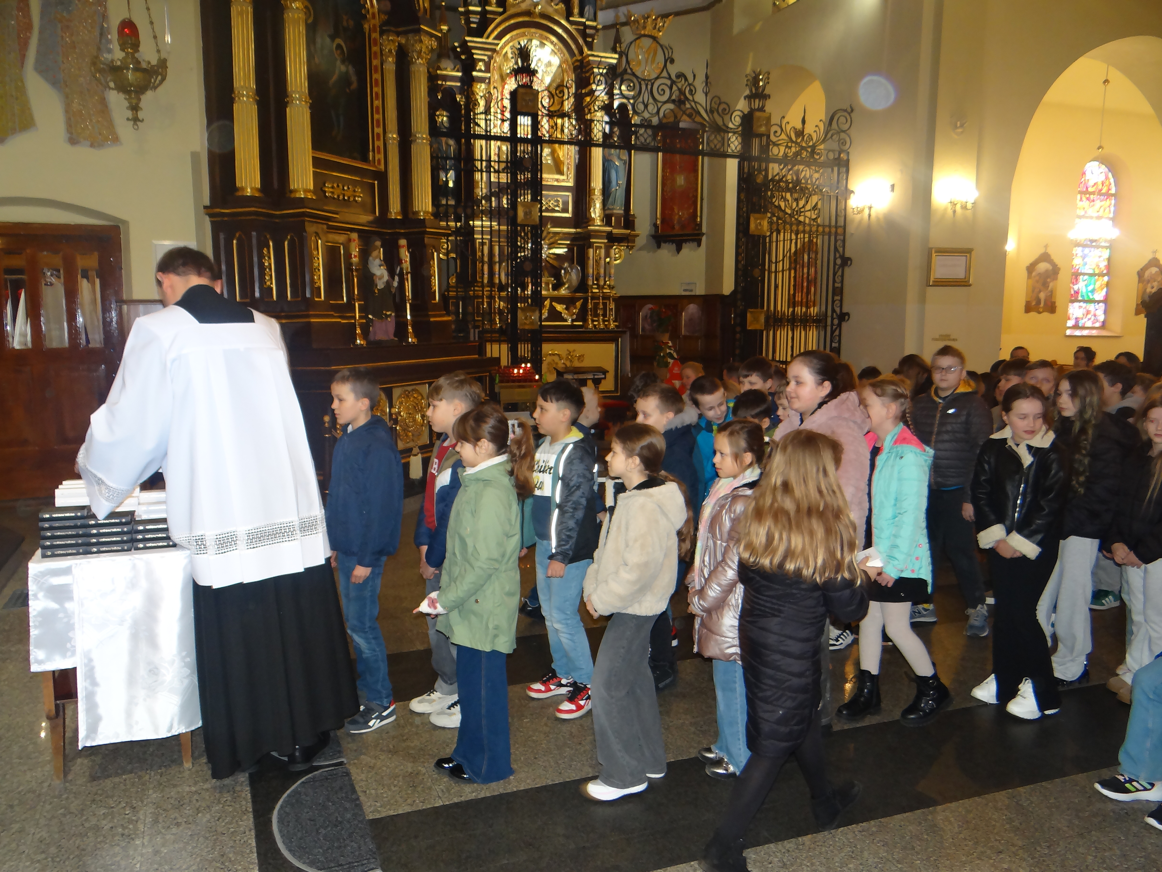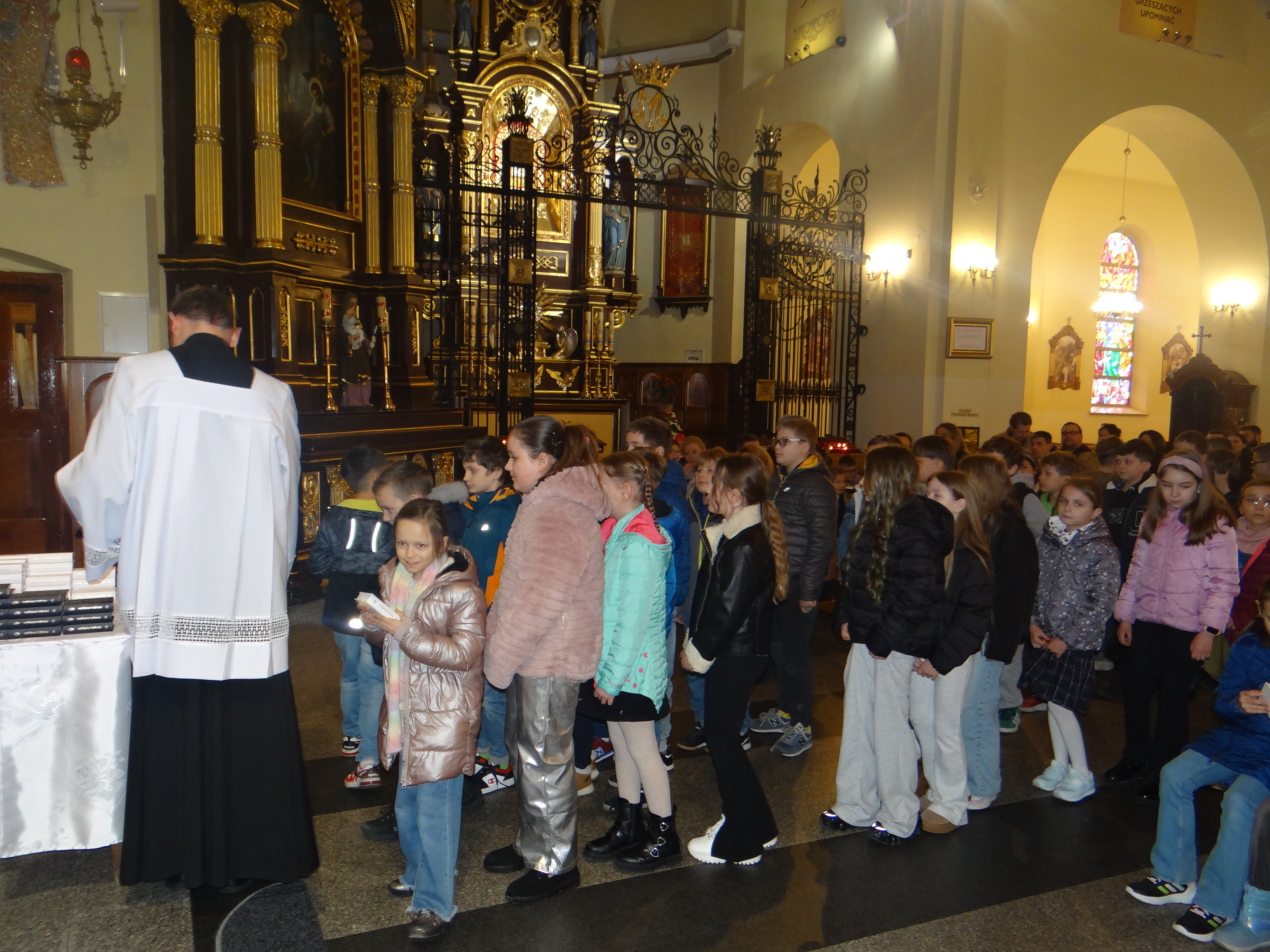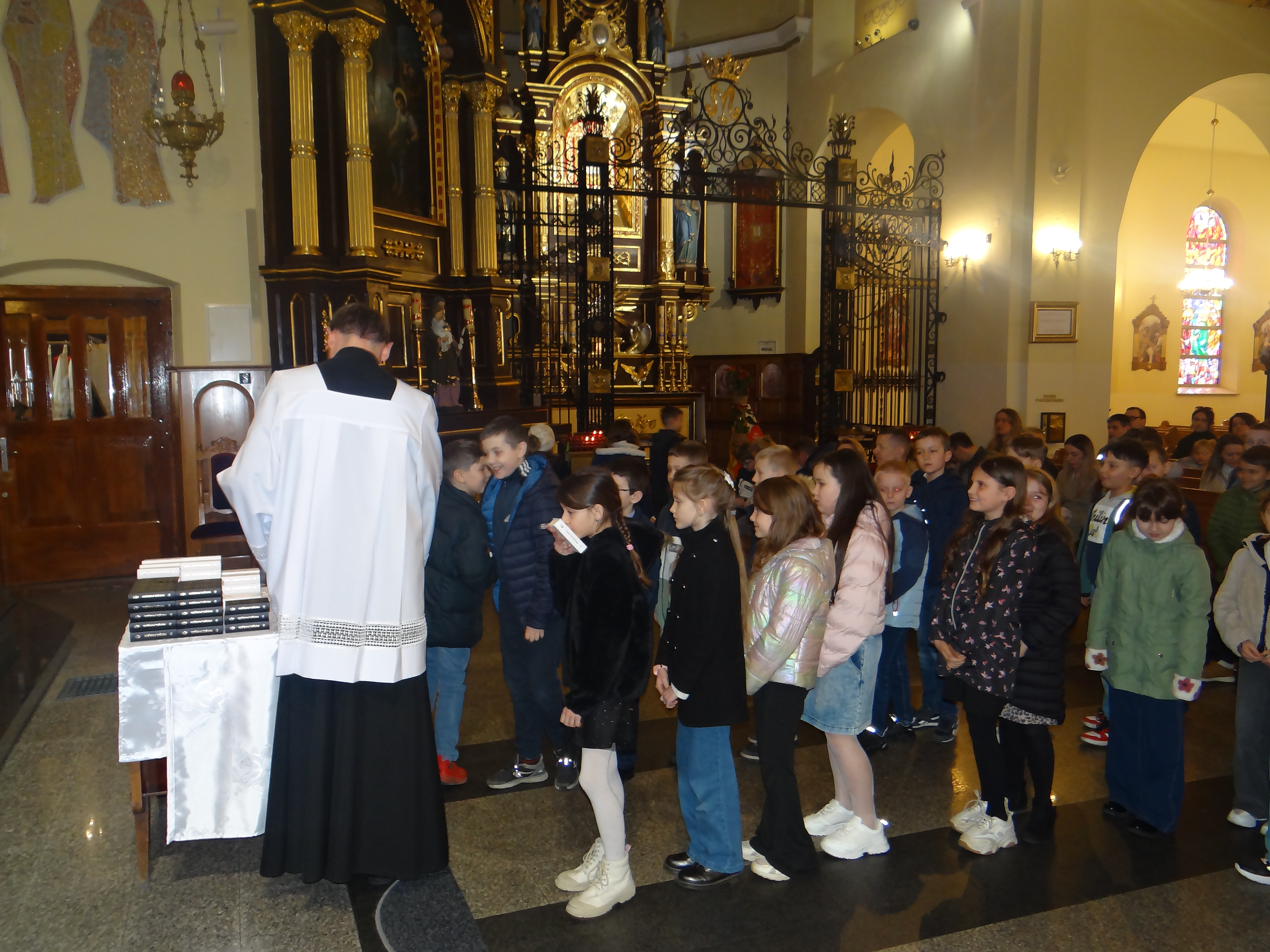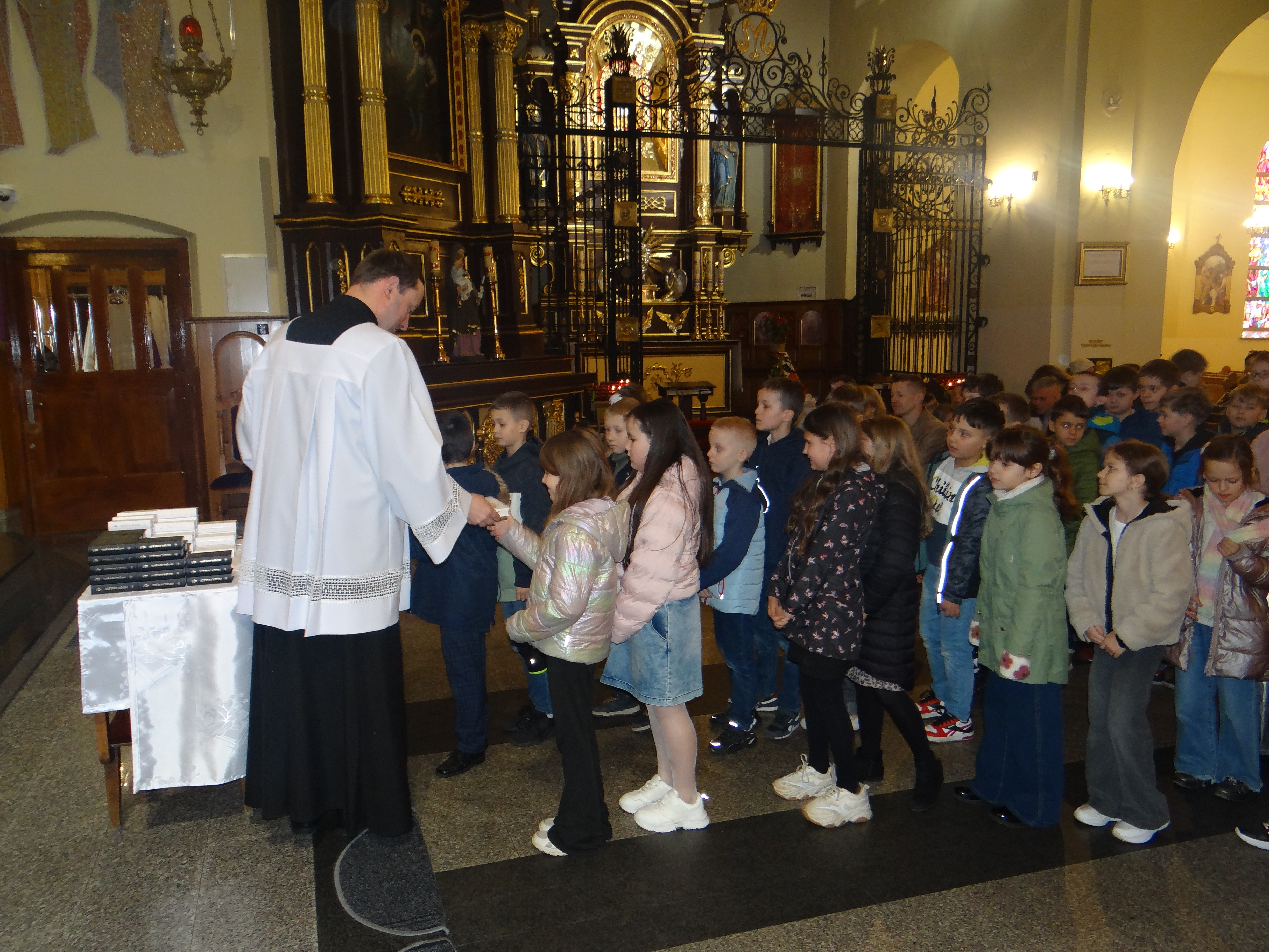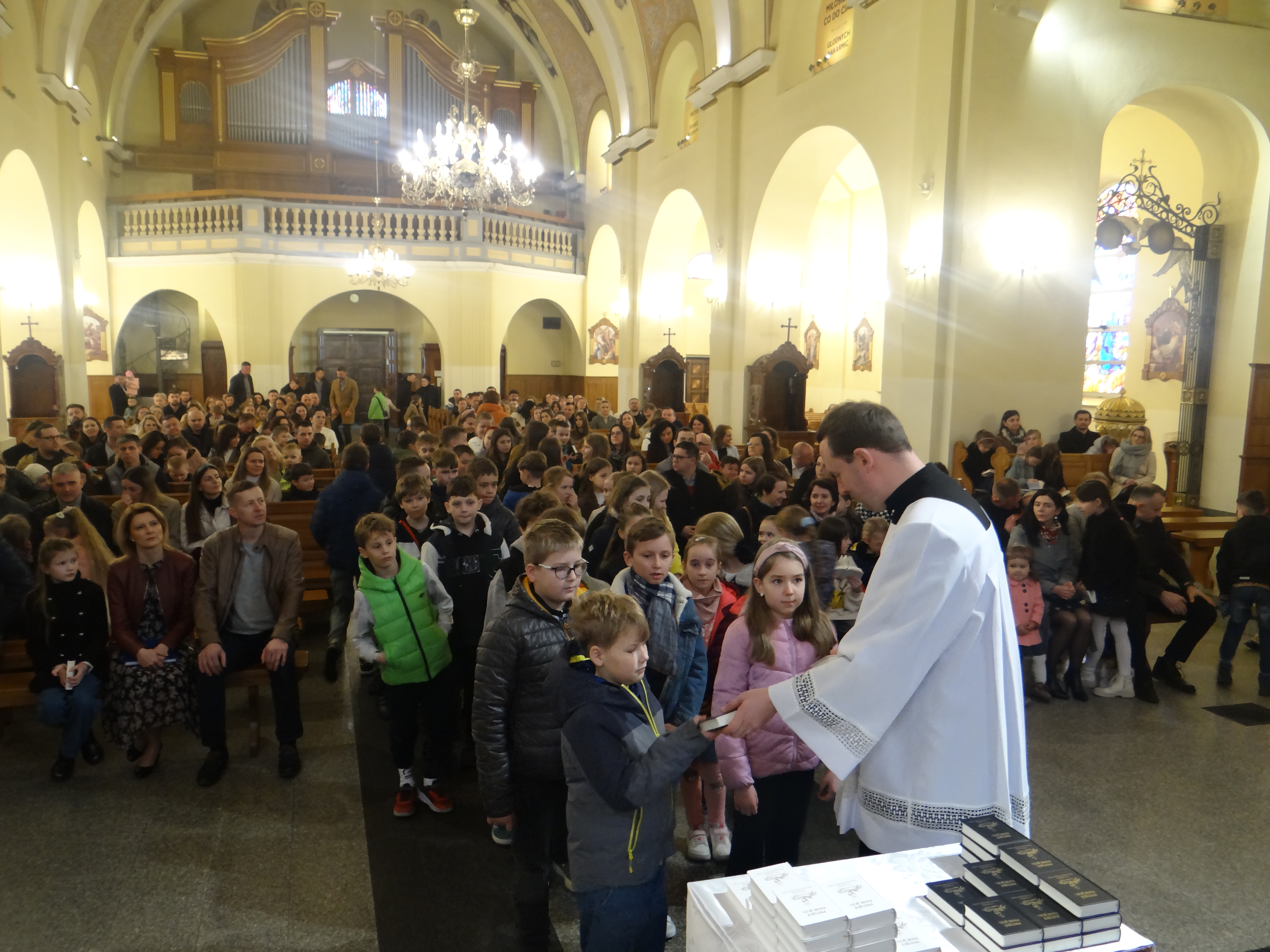W dniu dzisiejszym w naszym kościele, podczas Mszy Świętej dla dzieci o godz. 11:00, zostały poświęcone modlitewniki uczniom klas trzecich szkoły podstawowej, którzy przygotowują się do przyjęcia I Komunii Świętej. Po zakończonej Eucharystii modlitewniki wręczył dzieciom ks. Karol Hadam, odpowiedzialny za ich przygotowanie do przyjęcia tego sakramentu. Był to ważny moment na drodze duchowego przygotowania najmłodszych do pełnego uczestnictwa w życiu eucharystycznym Kościoła. Po Mszy Świętej odbyło się także spotkanie organizacyjne z rodzicami, podczas którego poruszono kilka kwestii związanych bezpośrednio ze zbliżającą się uroczystością Pierwszej Komunii Świętej. Omówiono również sprawy dotyczące planowanej wycieczki dziękczynnej, która będzie formą podziękowania Panu Bogu za dar przeżytego sakramentu.