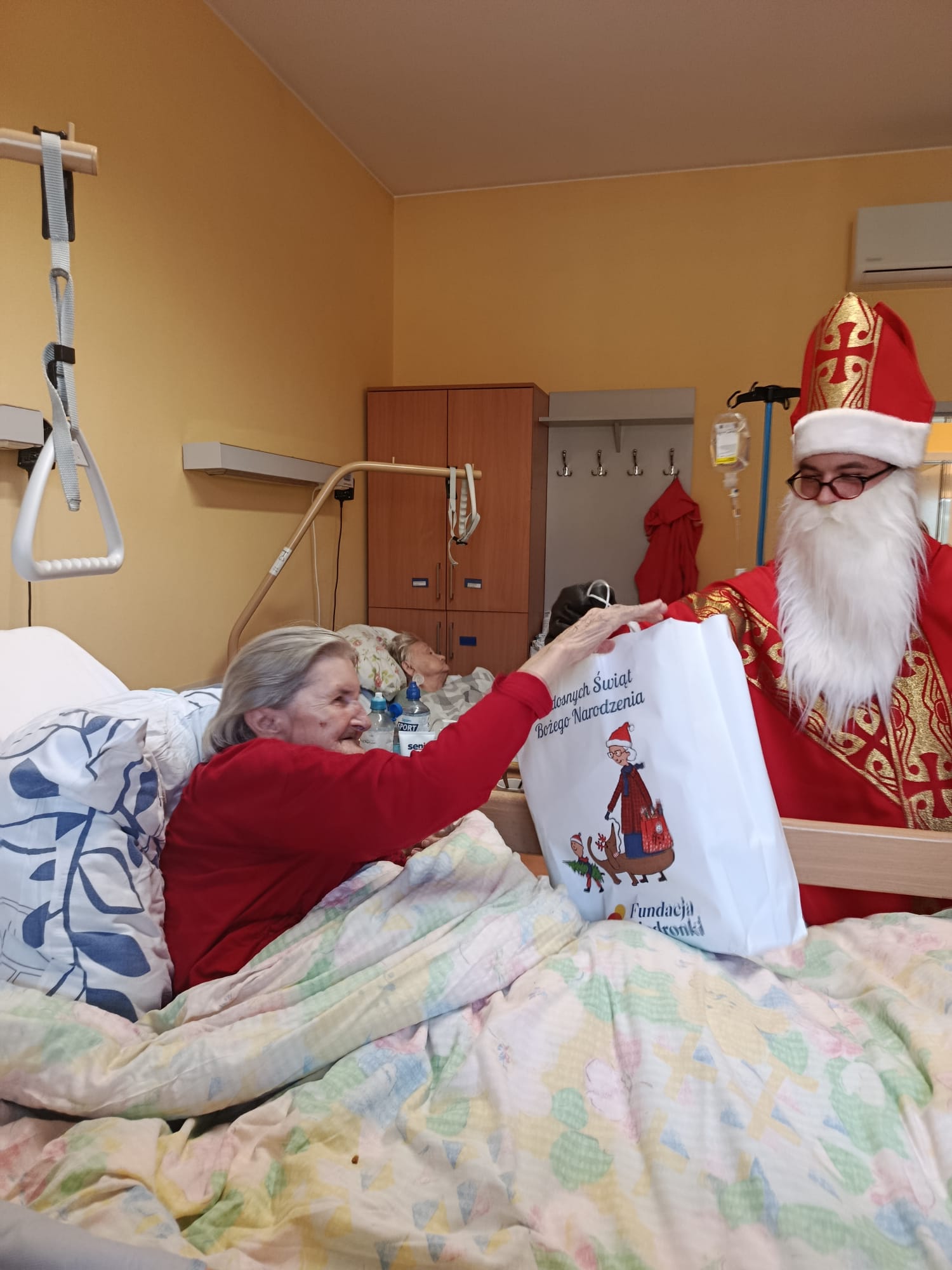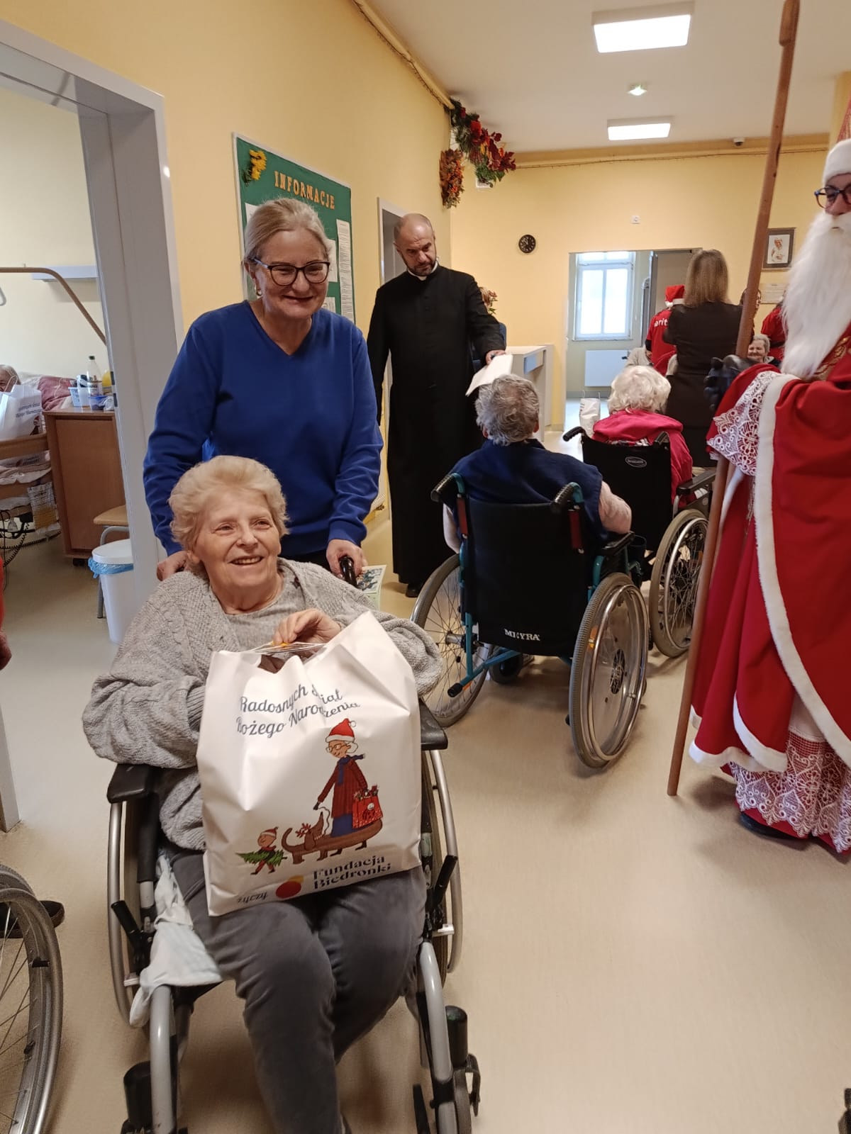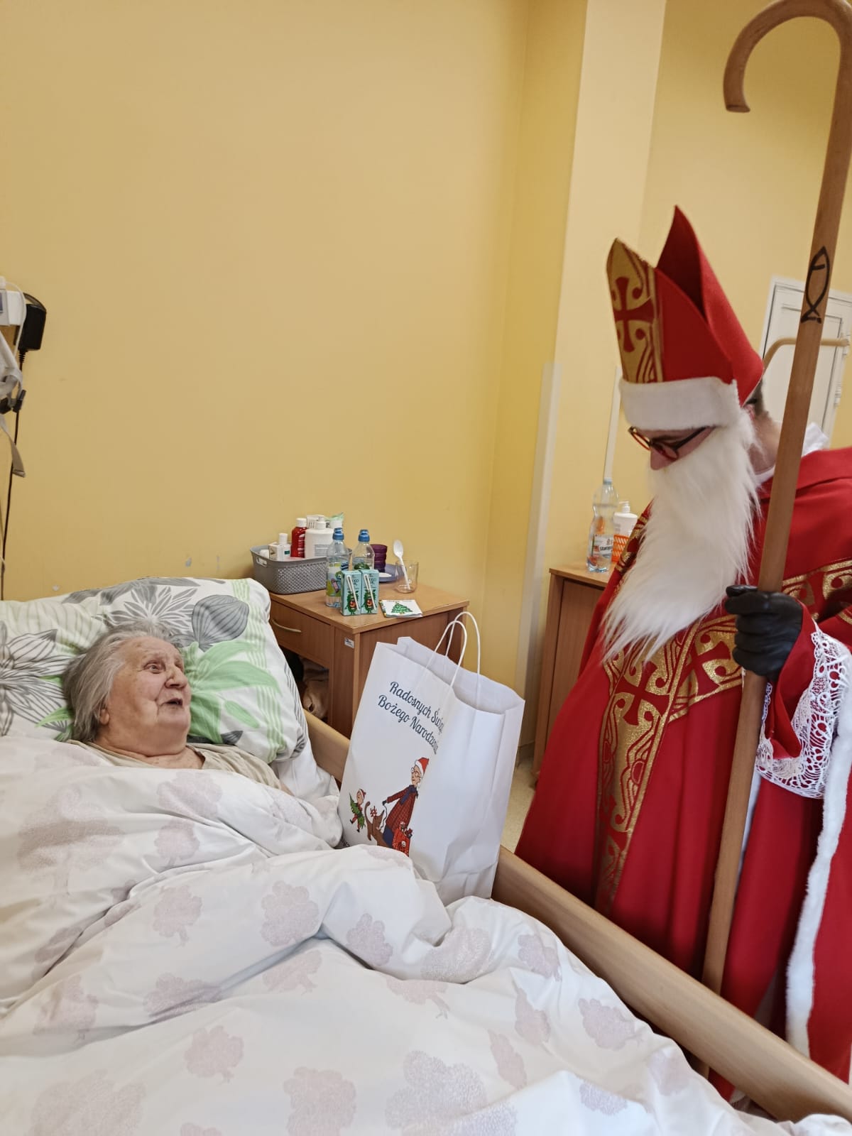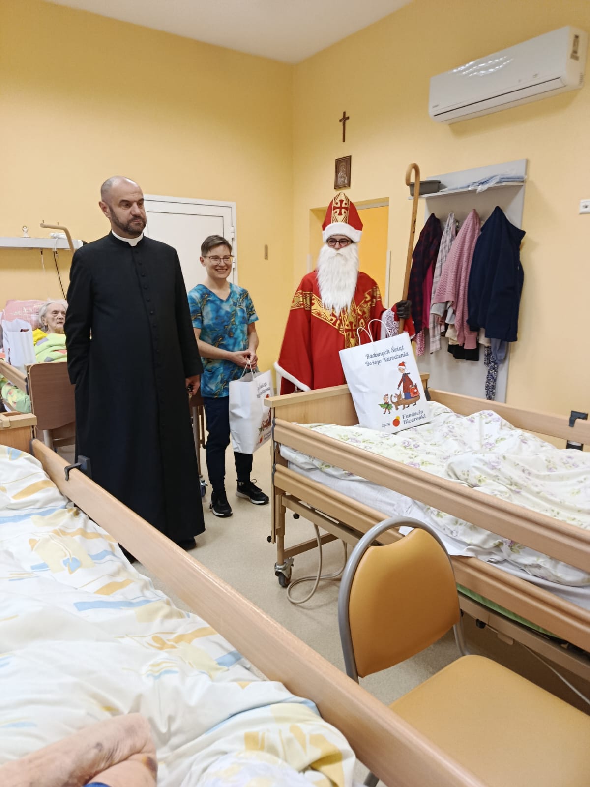 Wizyta rozpoczęła się od serdecznego powitania przez personel oraz pacjentów. Św. Mikołaj odwiedzał kolejno przebywających w placówce chorych, obdarowując ich dobrym słowem, modlitwą i drobnymi prezentami. Nie zabrakło pięknych uśmiechów oraz rozmów, które na chwilę rozświetliły codzienność wielu osób.