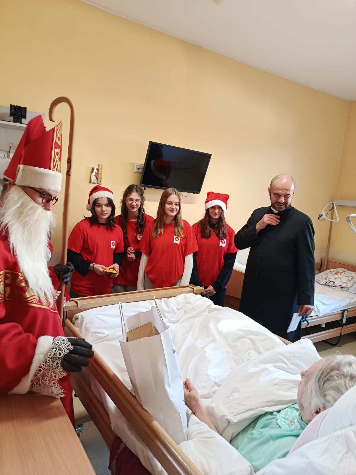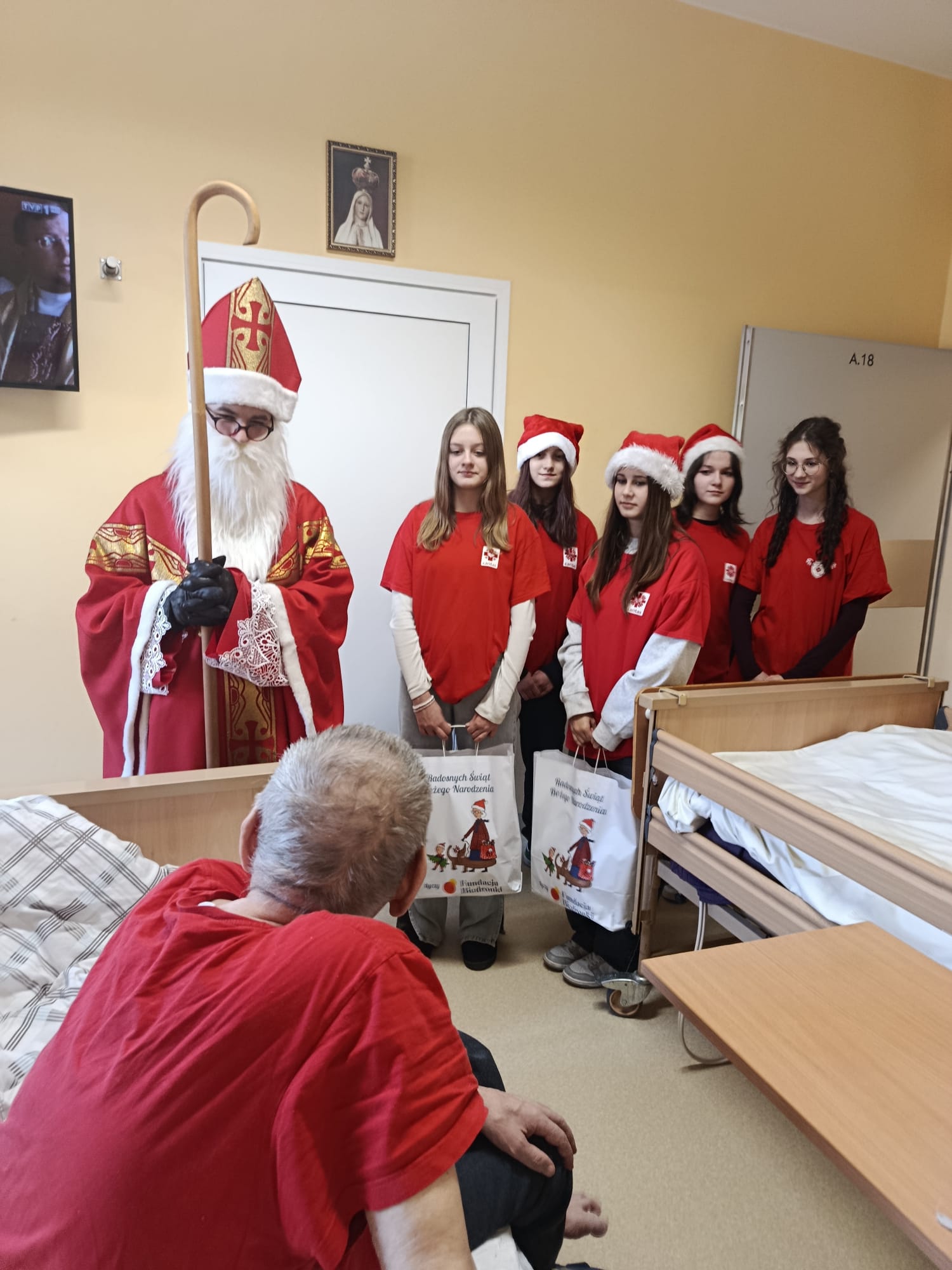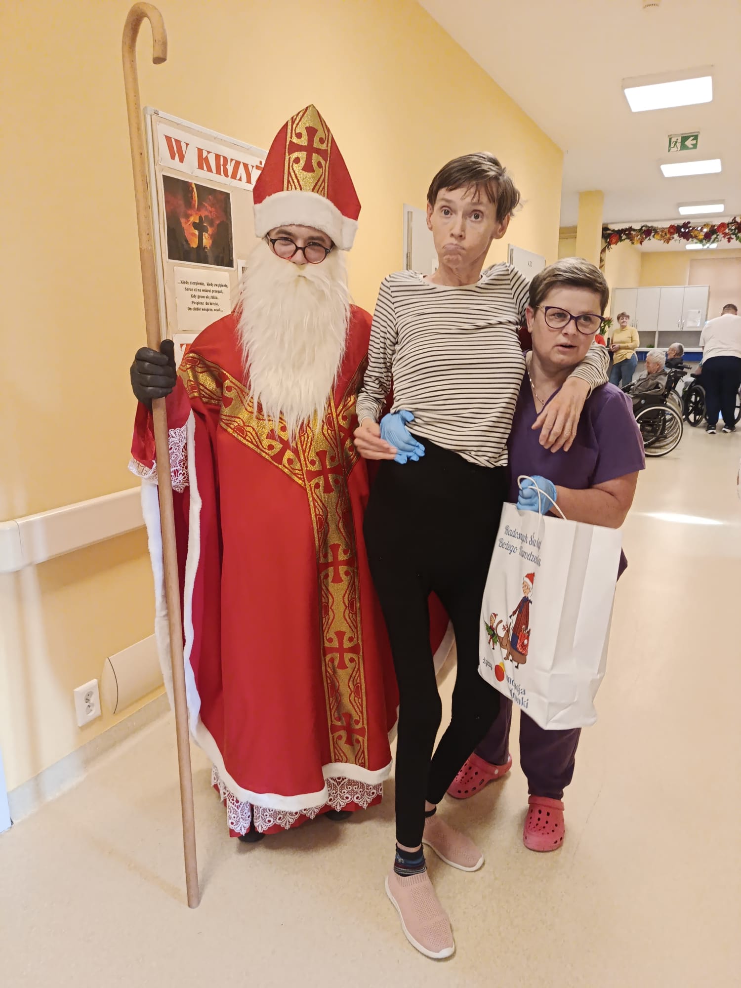 Wizyta rozpoczęła się od serdecznego powitania przez personel oraz pacjentów. Św. Mikołaj odwiedzał kolejno przebywających w placówce chorych, obdarowując ich dobrym słowem, modlitwą i drobnymi prezentami. Nie zabrakło pięknych uśmiechów oraz rozmów, które na chwilę rozświetliły codzienność wielu osób.