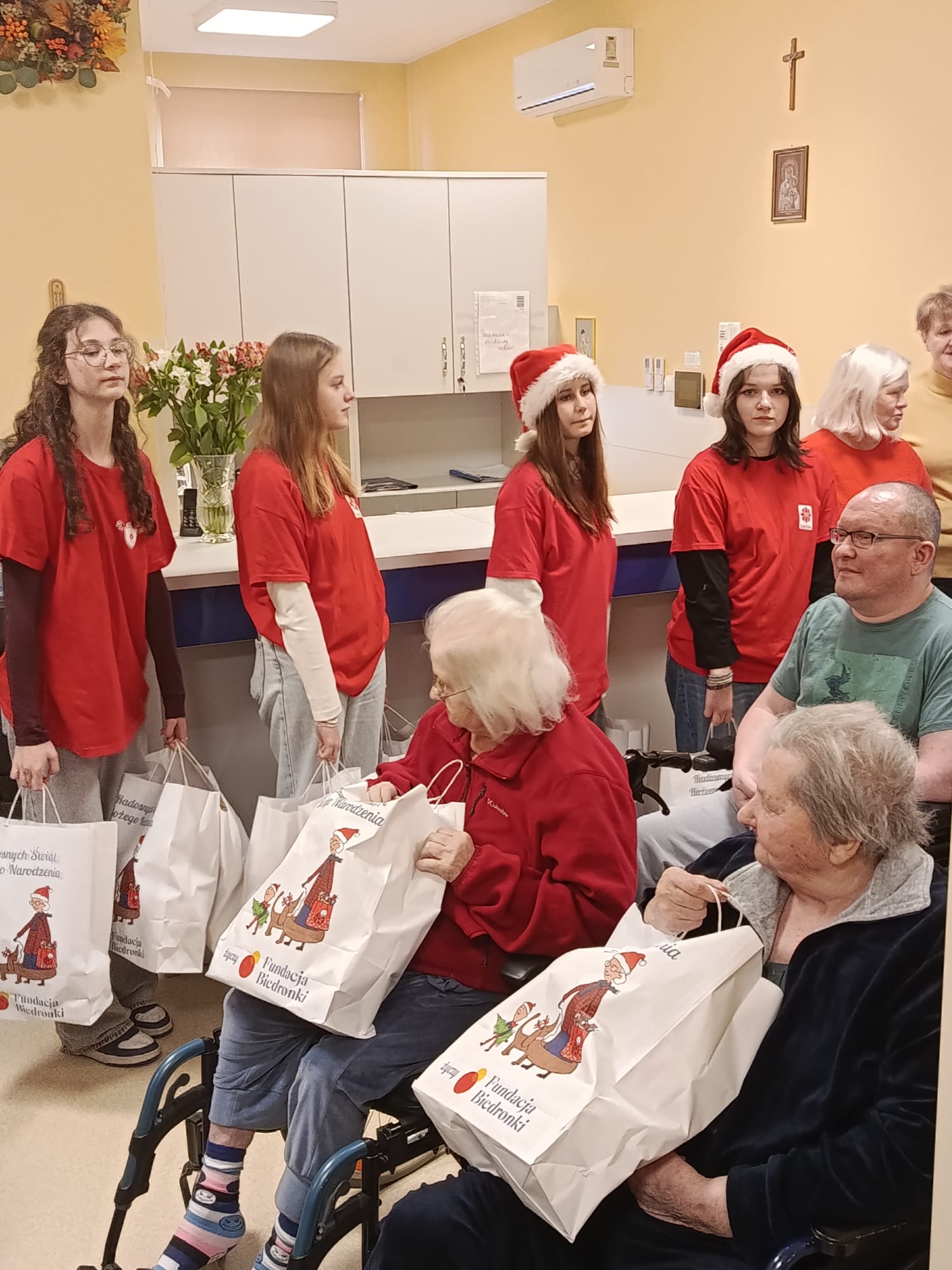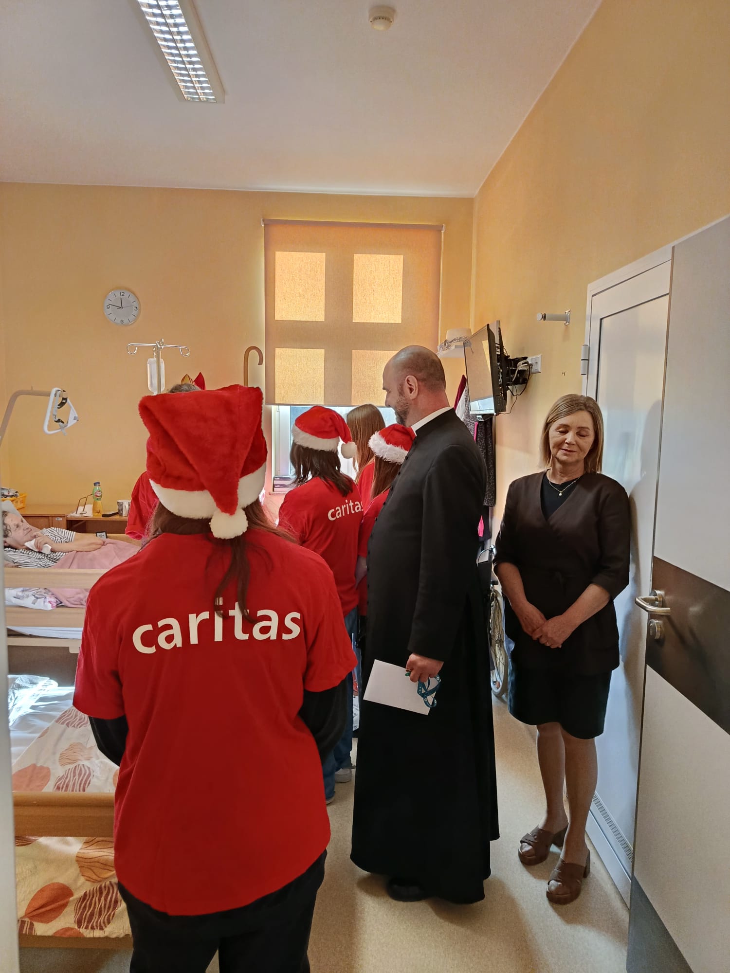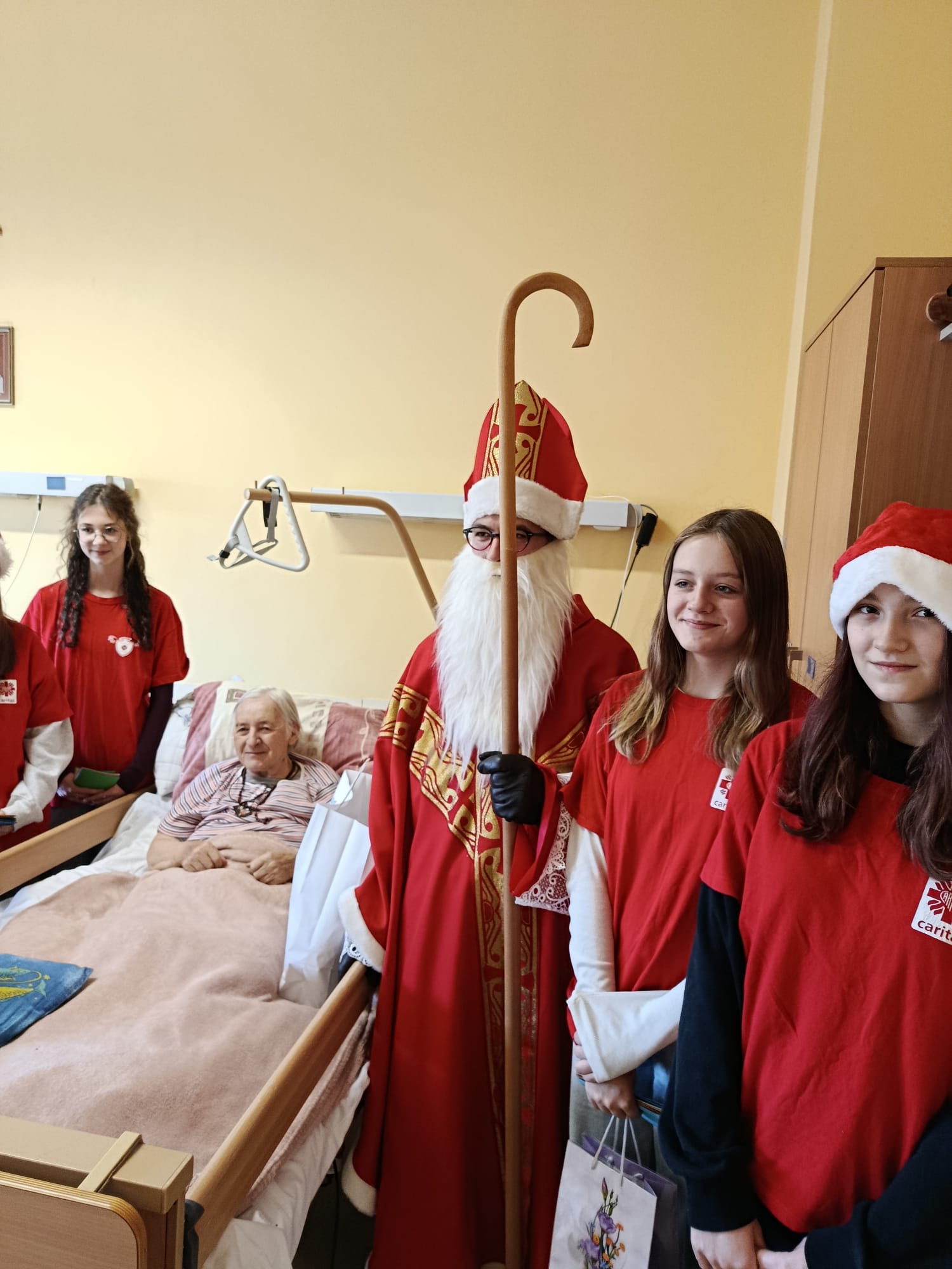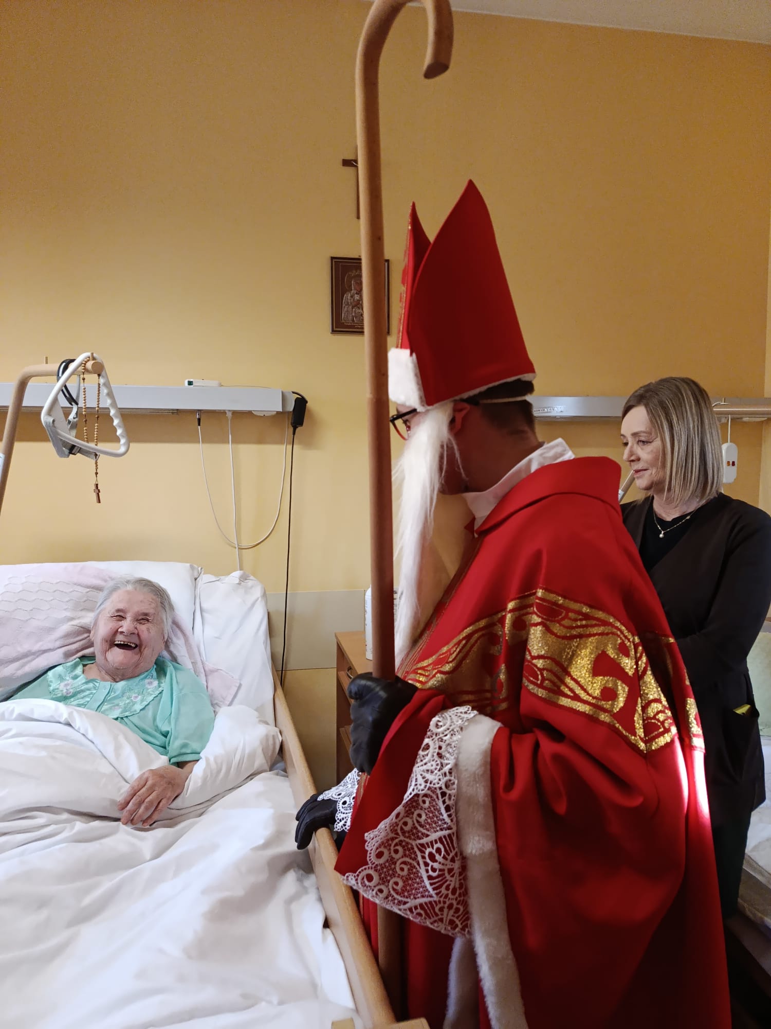 Wizyta rozpoczęła się od serdecznego powitania przez personel oraz pacjentów. Św. Mikołaj odwiedzał kolejno przebywających w placówce chorych, obdarowując ich dobrym słowem, modlitwą i drobnymi prezentami. Nie zabrakło pięknych uśmiechów oraz rozmów, które na chwilę rozświetliły codzienność wielu osób.