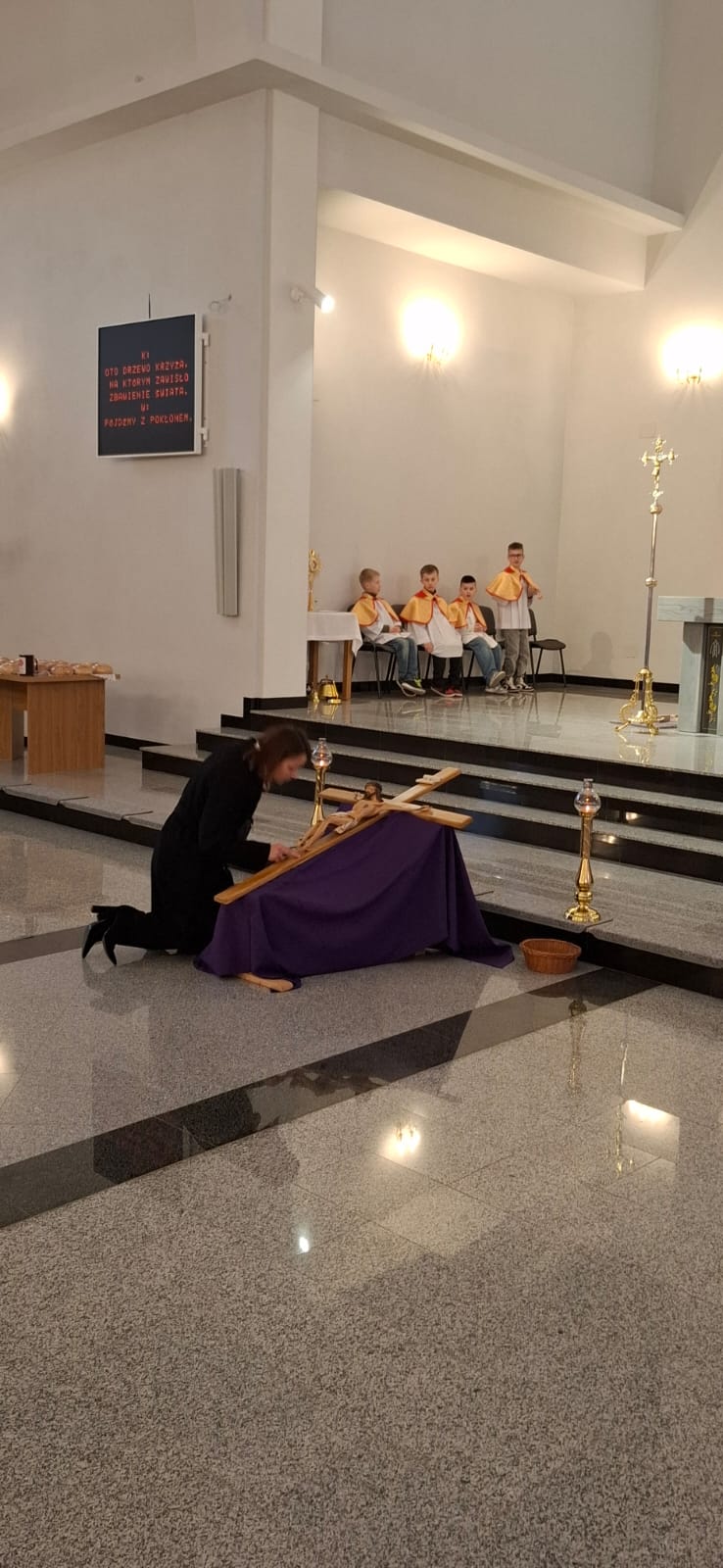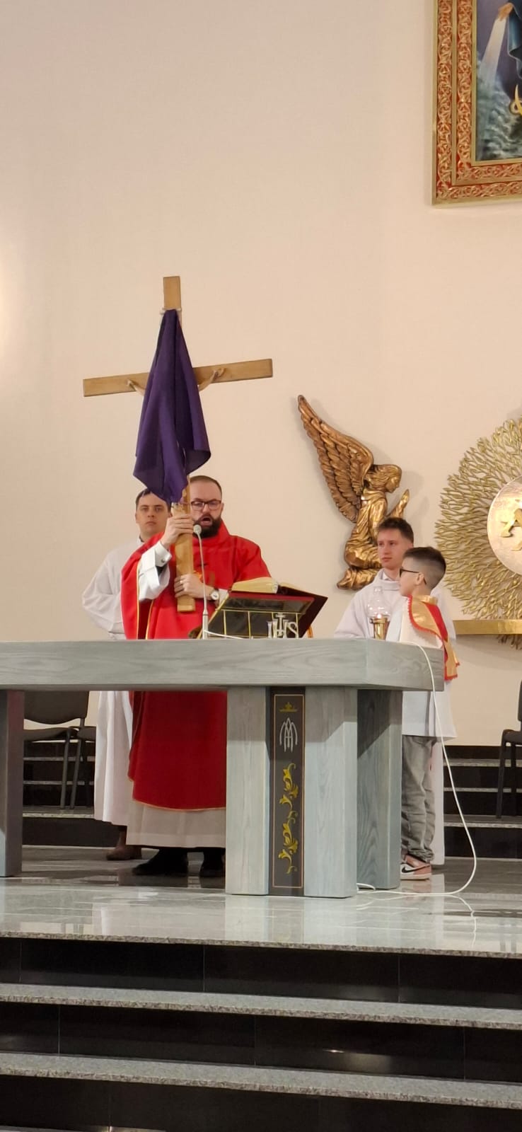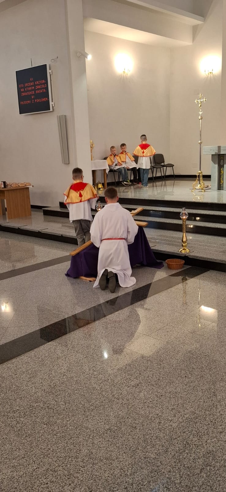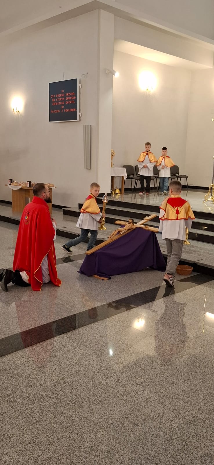 W Wielki Piątek o godz. 18:00 Liturgia Męki Pańskiej była sprawowana również na osiedlu Zabajka. Nabożeństwu przewodniczył wikariusz ks. Dariusz Mikrut. Podobnie jak w kościele parafialnym, wierni zgromadzeni na Zabajce przeżywali tę wyjątkową liturgię w duchu modlitwy i skupienia, rozważając mękę i śmierć Jezusa Chrystusa. Wspólna modlitwa, adoracja krzyża oraz udział w Komunii Świętej stały się dla uczestników okazją do pogłębienia wiary i wdzięczności za dar zbawienia.