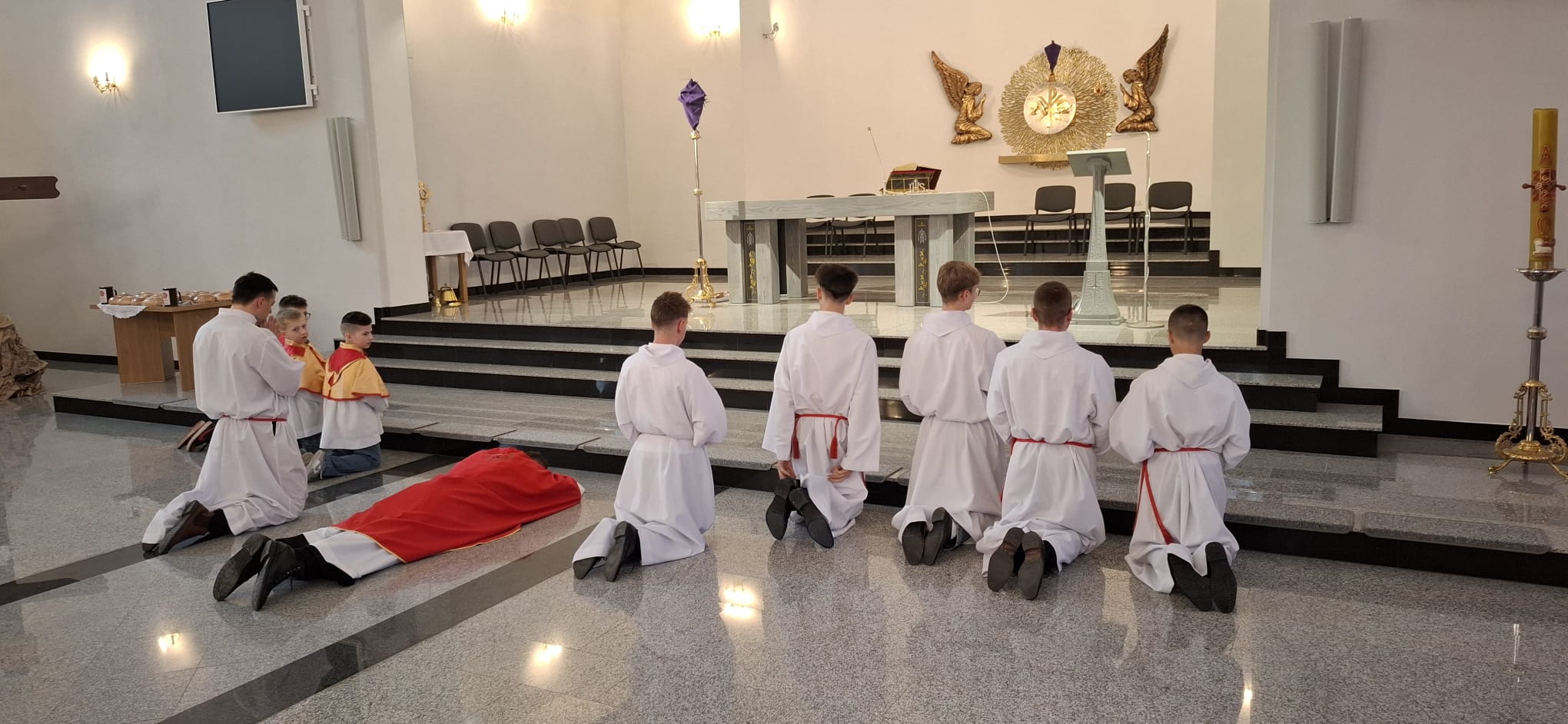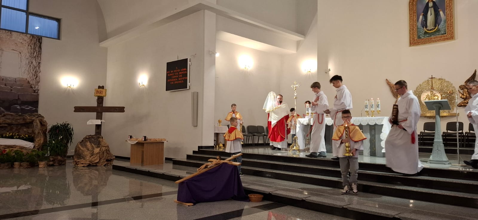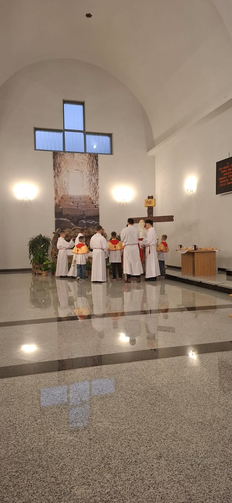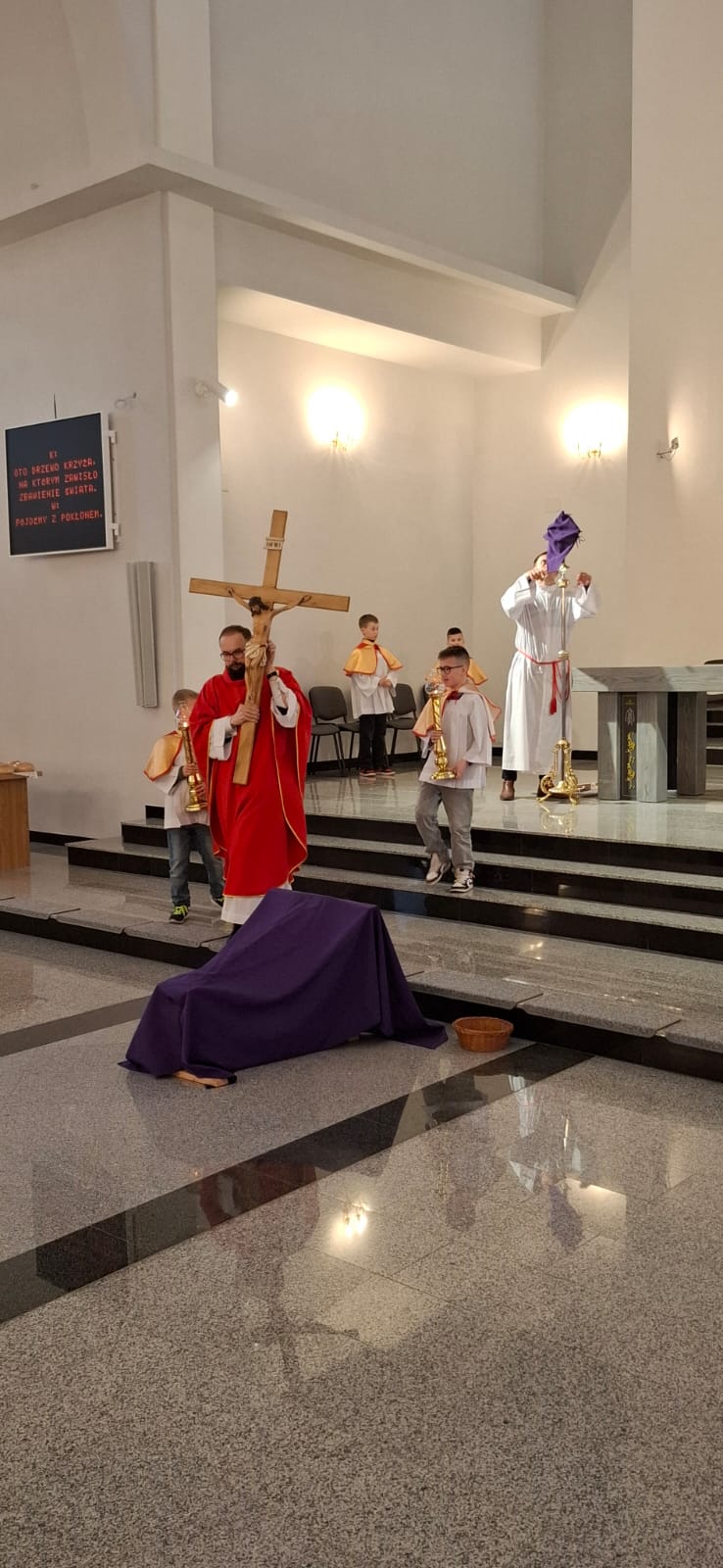 W Wielki Piątek o godz. 18:00 Liturgia Męki Pańskiej była sprawowana również na osiedlu Zabajka. Nabożeństwu przewodniczył wikariusz ks. Dariusz Mikrut. Podobnie jak w kościele parafialnym, wierni zgromadzeni na Zabajce przeżywali tę wyjątkową liturgię w duchu modlitwy i skupienia, rozważając mękę i śmierć Jezusa Chrystusa. Wspólna modlitwa, adoracja krzyża oraz udział w Komunii Świętej stały się dla uczestników okazją do pogłębienia wiary i wdzięczności za dar zbawienia.