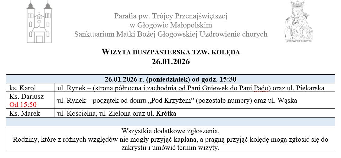 Rozpiska kolędy: